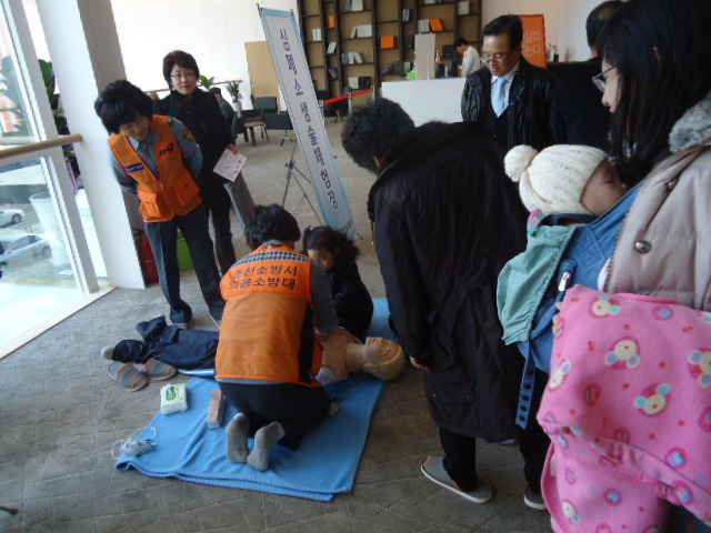 E편한세상 모델하우스에서 CPR체험중입니다 11월25일을 첫날로12월16일까지 조을 이루어 실시하고 있습니다. 많은 사람이 적극적으로 참여하고 있습니다