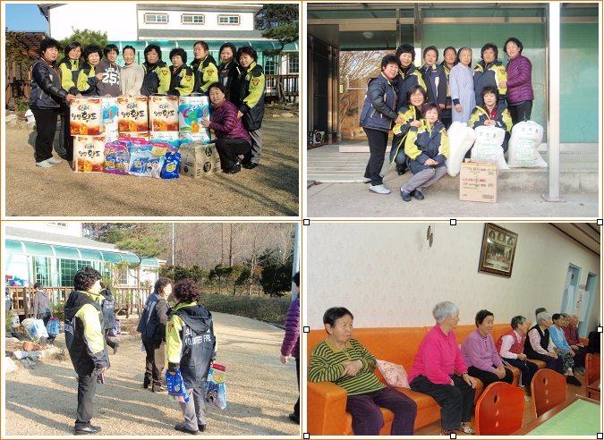 양구여성의용소방대(대장 박명숙)에서는 12.16(화) 14:00 ~ 연말연시를 맞아 양구읍 석현리 소재 사회복지시설(안나의 집, 천사의 집)을 위문 방문하여 쌀과 생필품 등 위문품을 전달하고 할머니들에게 말벗도 되어드리며, 연말 소외되기 쉬운 이웃들에게 작은 사랑을 실천하였습니다. 날씨는 조금 추웠지만 마음은 따뜻한 하루였습니다~^^*
