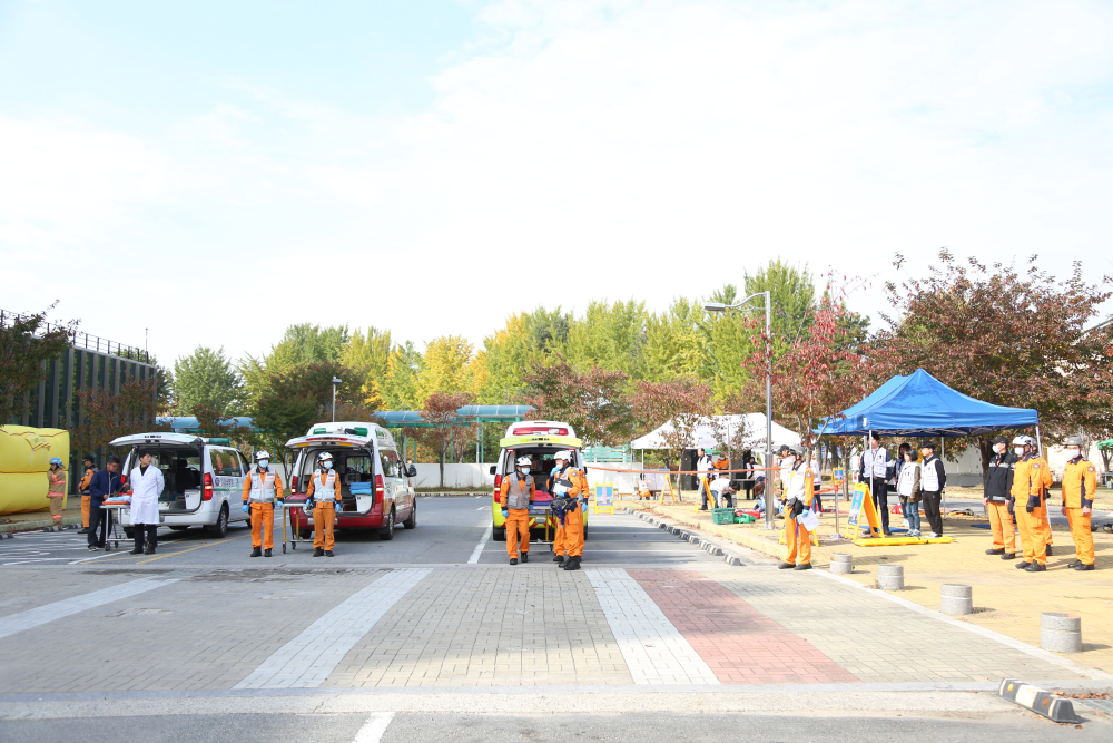 이날 훈련에는 23개 기관·단체에서 262여명이 참여하며 소방헬기, 펌프차량, 굴절사다리차, 구조구급차 등 장비 50대가 동원되었으며,대규모 재난상황에 대처하는 유관기관별 역할분담을 통한 합동 역량 강화에 중점을 두고 실시했다.