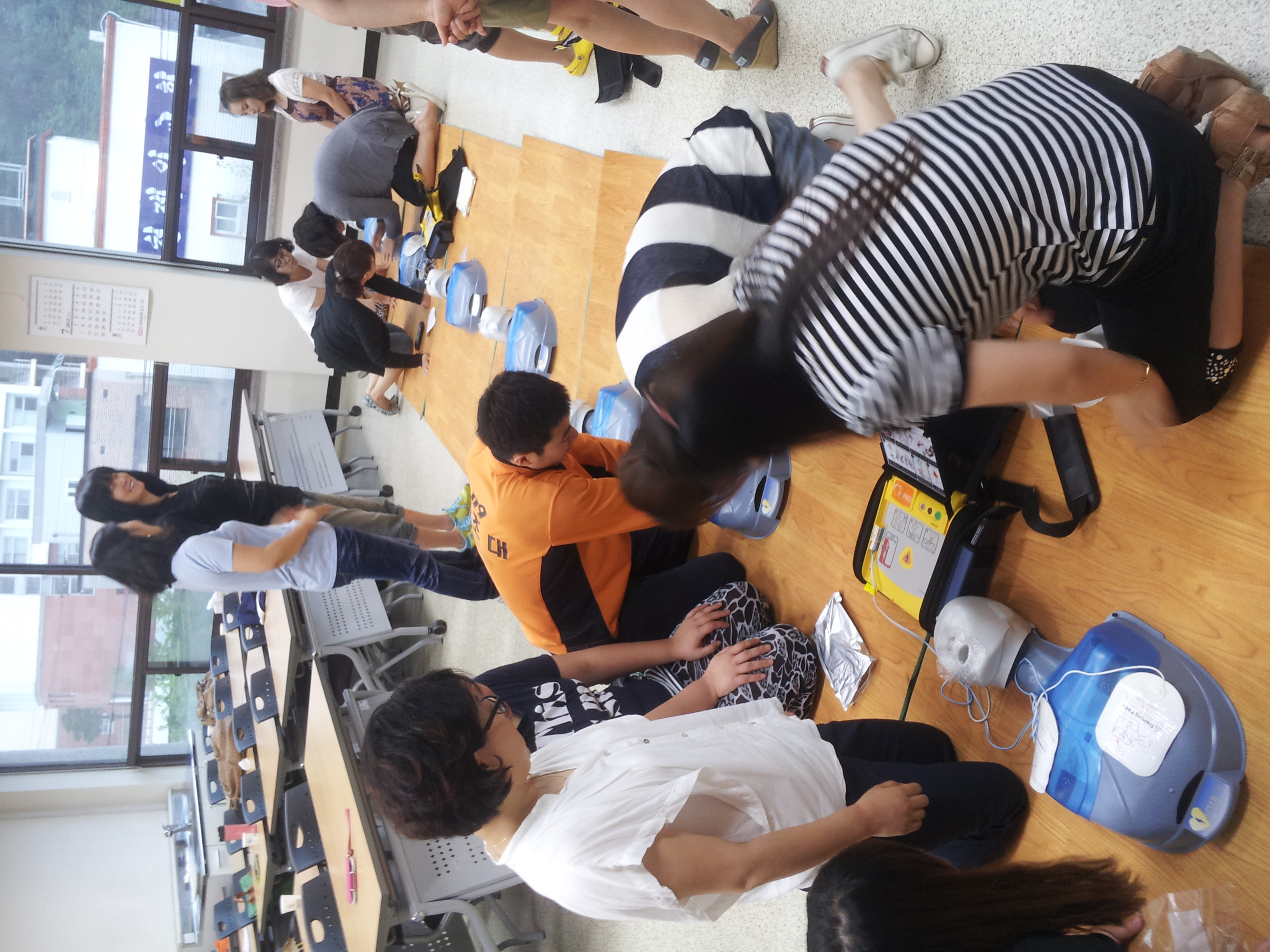춘천소방서(서장 우원기) 석사구급대에서는 7월22일 오전 10시30분 춘천여성인력개발센터에서 방과 후 아동지도사 24명을 대상으로 심폐소생술 및 제세동기 사용법, 기도폐쇄 응급처치등을 교육하였습니다.