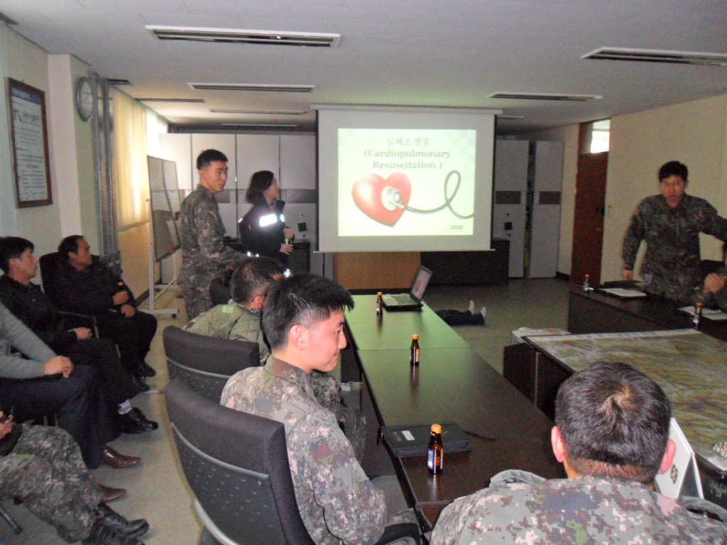 건설사업1과 회의실에서 중령 김태한 등을 포함한 20여명을 대상으로 심폐소생술교육 및 제세동기