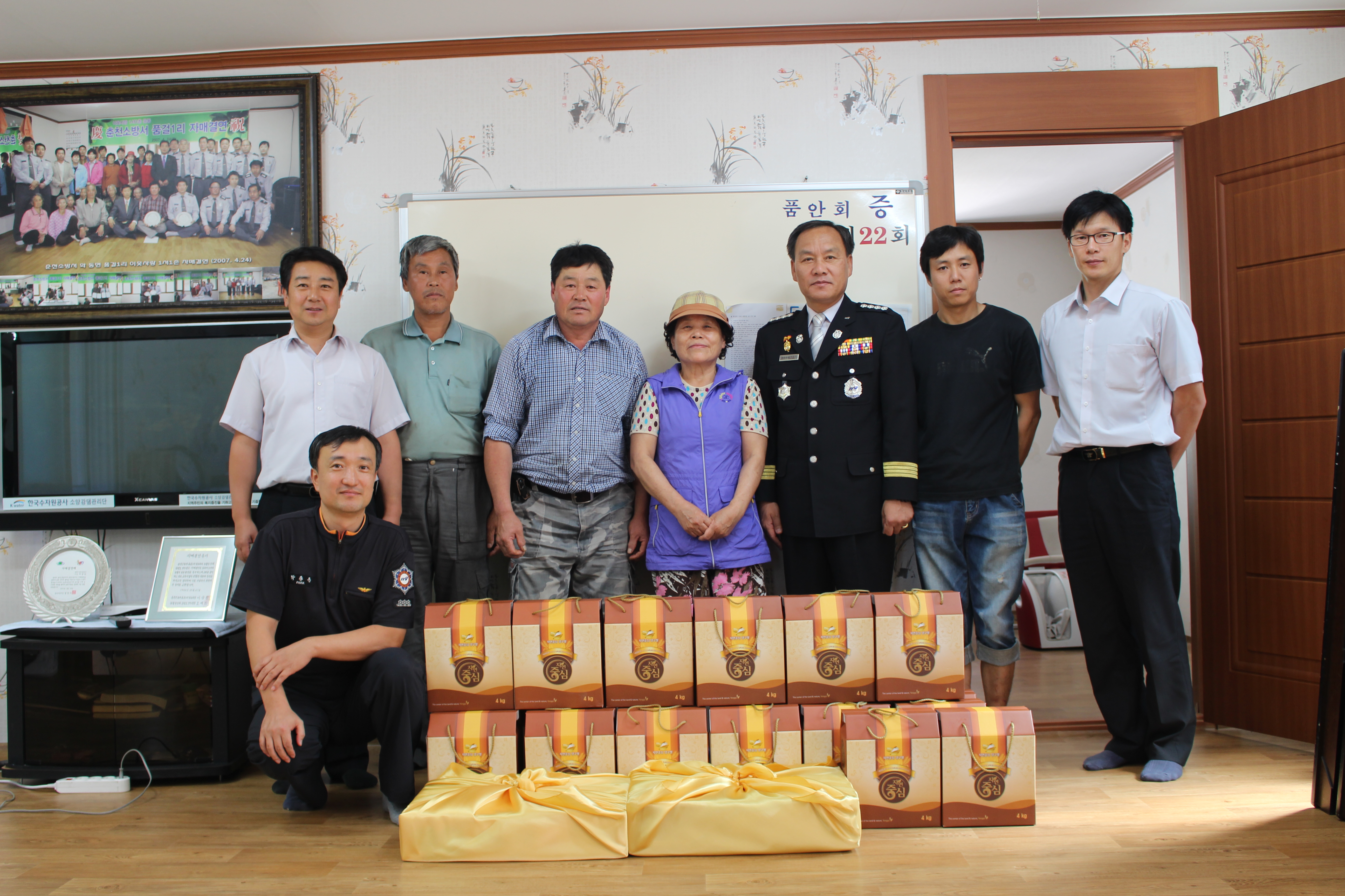 춘천소방서(서장 박창진)는 2014년 9월4일 추석맞이 사랑나눔회 봉사활동으로 자매결연마을인 춘천시 동면 품걸1리를 방문하여 농촌일손돕기 및 위문품을 전달하였다.