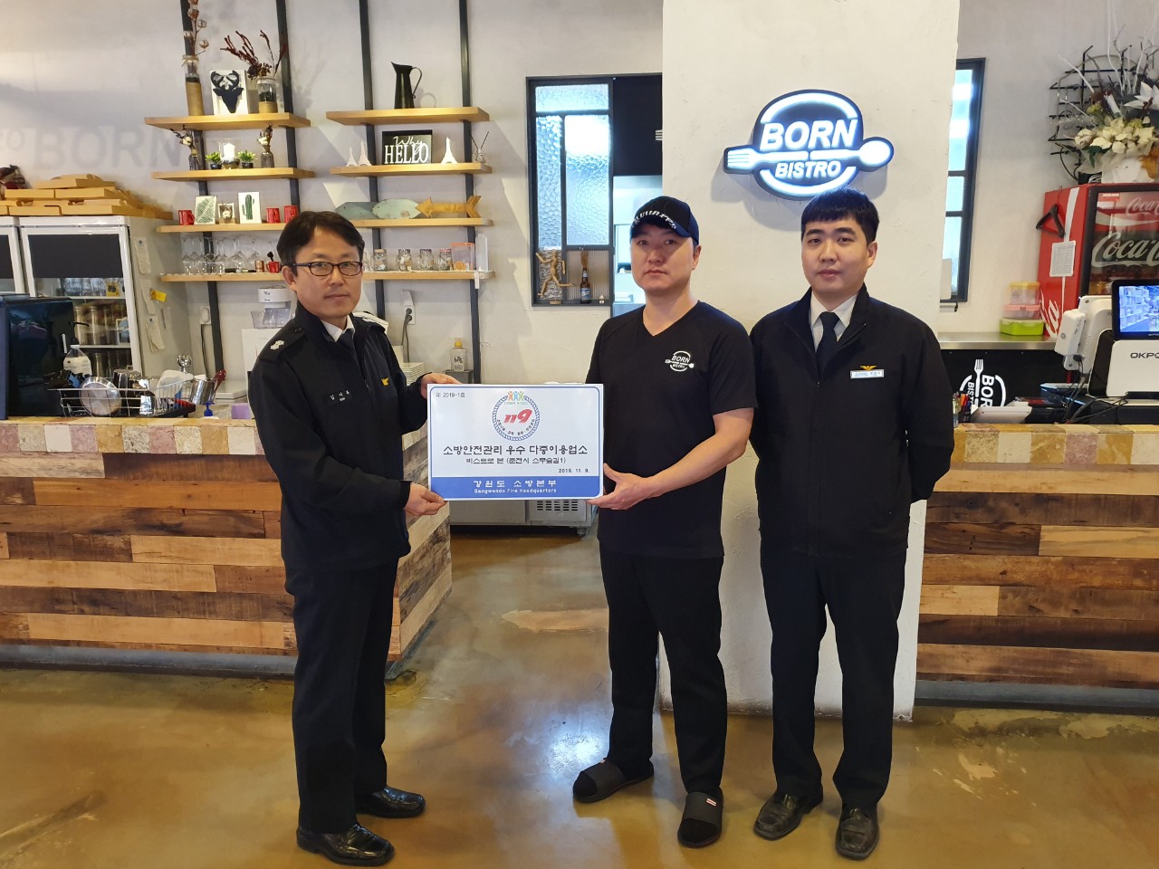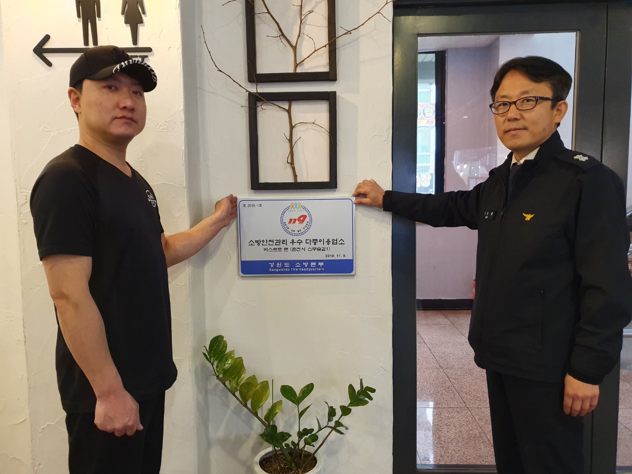 춘천소방서, 비스트로본 우수다중이용업소 표지 전수 및 게첩