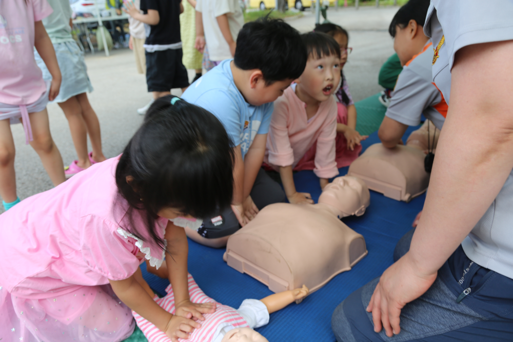 주요 내용은 ▲심폐소생술 교육 및 실습 ▲자동심장충격기(AED) 사용법 ▲주택용 소방시설 설치 안내 ▲화재 시 대피 요령 및 소화기 사용 방법 등이다.