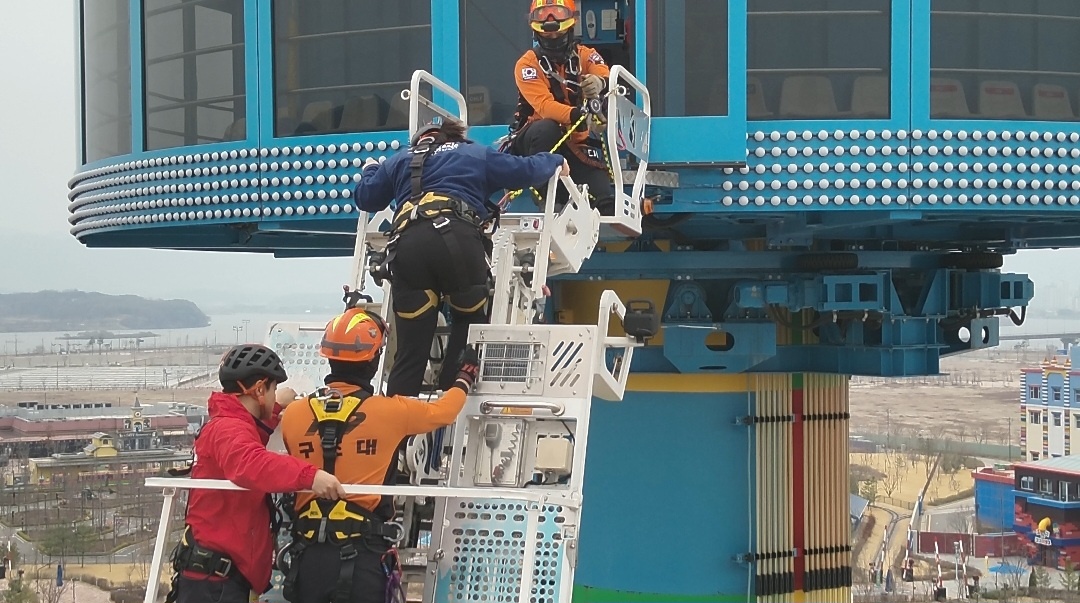 춘천소방서(서장 권혁범)는 2일 오후 2시 춘천시 소재의 레고랜드 코리아에서 놀이기구에 대한 현장대원들의 구조능력 향상을 위한 특별구조훈련을 실시하였다.