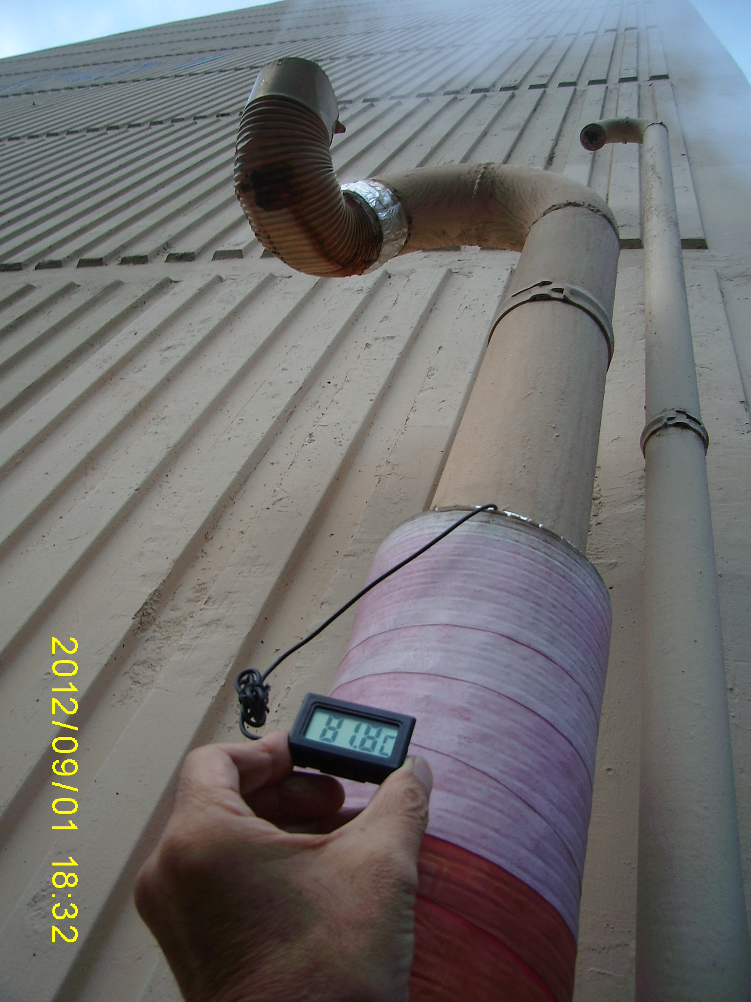 공동난방 시설의 급탕수 가열 보일러의 폭팔 방지 증기 배출 굴뚝으로 보이는 곳으로 수증기가 세차게 배출됩니다.(첨부물 참조) 탱크의 물이 100도c 가 되어도 계속 한 두시간 정도 물을 끓이고 있다는 생각이 듭니다. 증기 배출 굴뚝의 온도가 섭씨 80도를 넘는다면 보일러 자체의 온도는 몇도 되겠습니까? 보일러담담자, 관리소장에게 내 생각을 말 했지만 정상적으로 운전하고 있다고만 하니 개인이 직접 조사할 능력이 없습니다. 소방서에서는 사고방지 차원에서 집단 주거지 보일러의 가열 상한 온도 설정과 측정이 정상적인지? 운전 방법은 적절한지 감독할 수 없습니까? (사진은 후평3동 현대2차 아파트 201동 서측 벽, 점화시간: 오전11시, 오후6시)