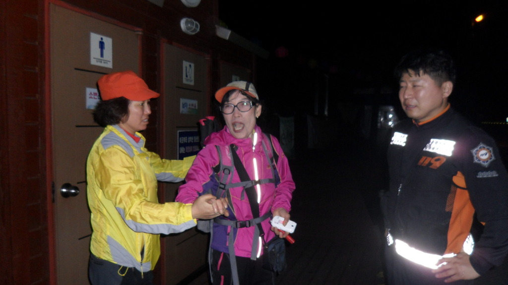 한분이(여자) 다른 코스로 빠져서 헤메고 있었고 날은 어두워지고 추워지고