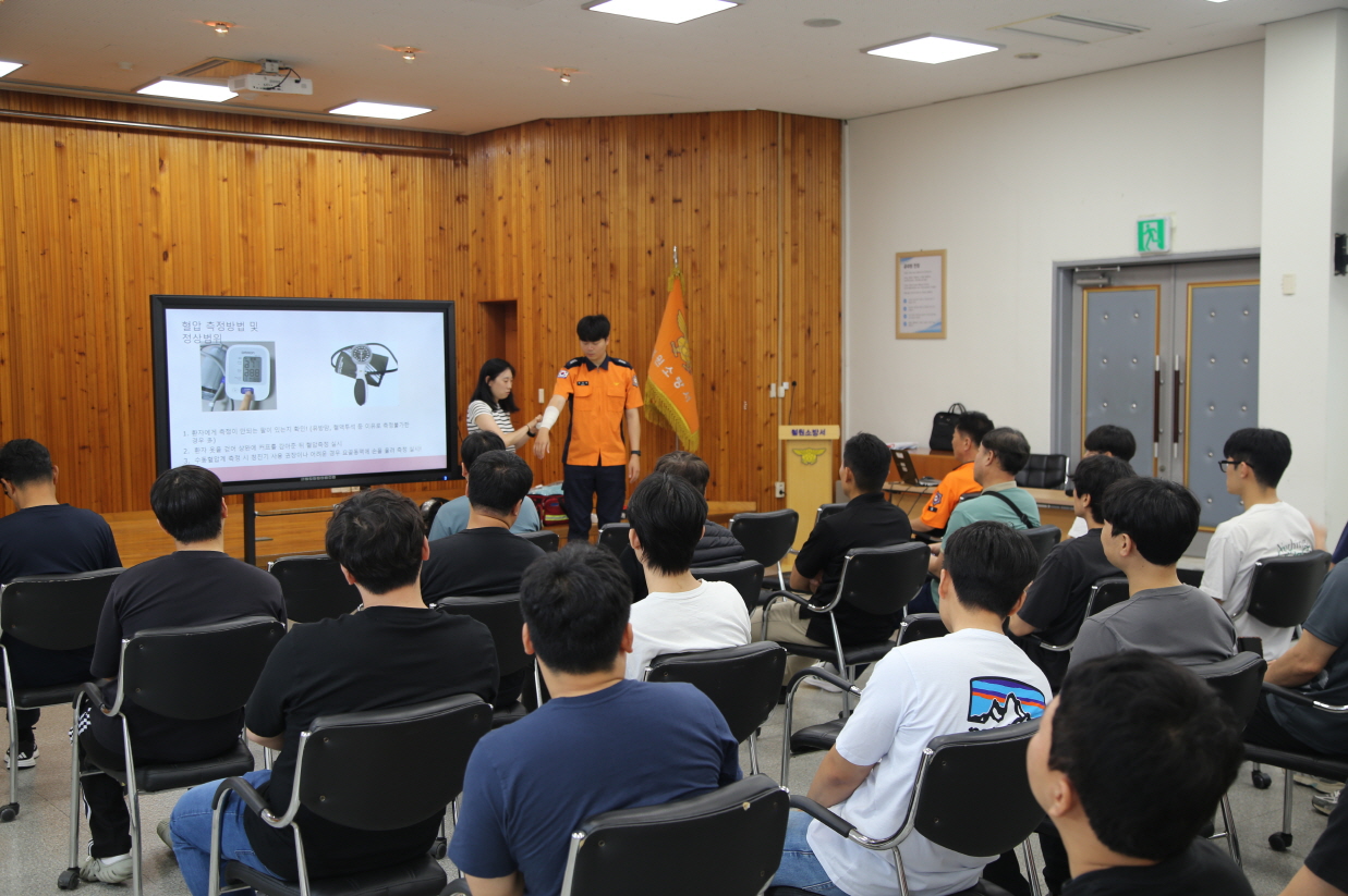 이번 구급 교육 훈련은 펌뷸런스 대원 기본 응급처치 관련 교육과 구급활동 현장활동 발표 순서로 진행되었다.