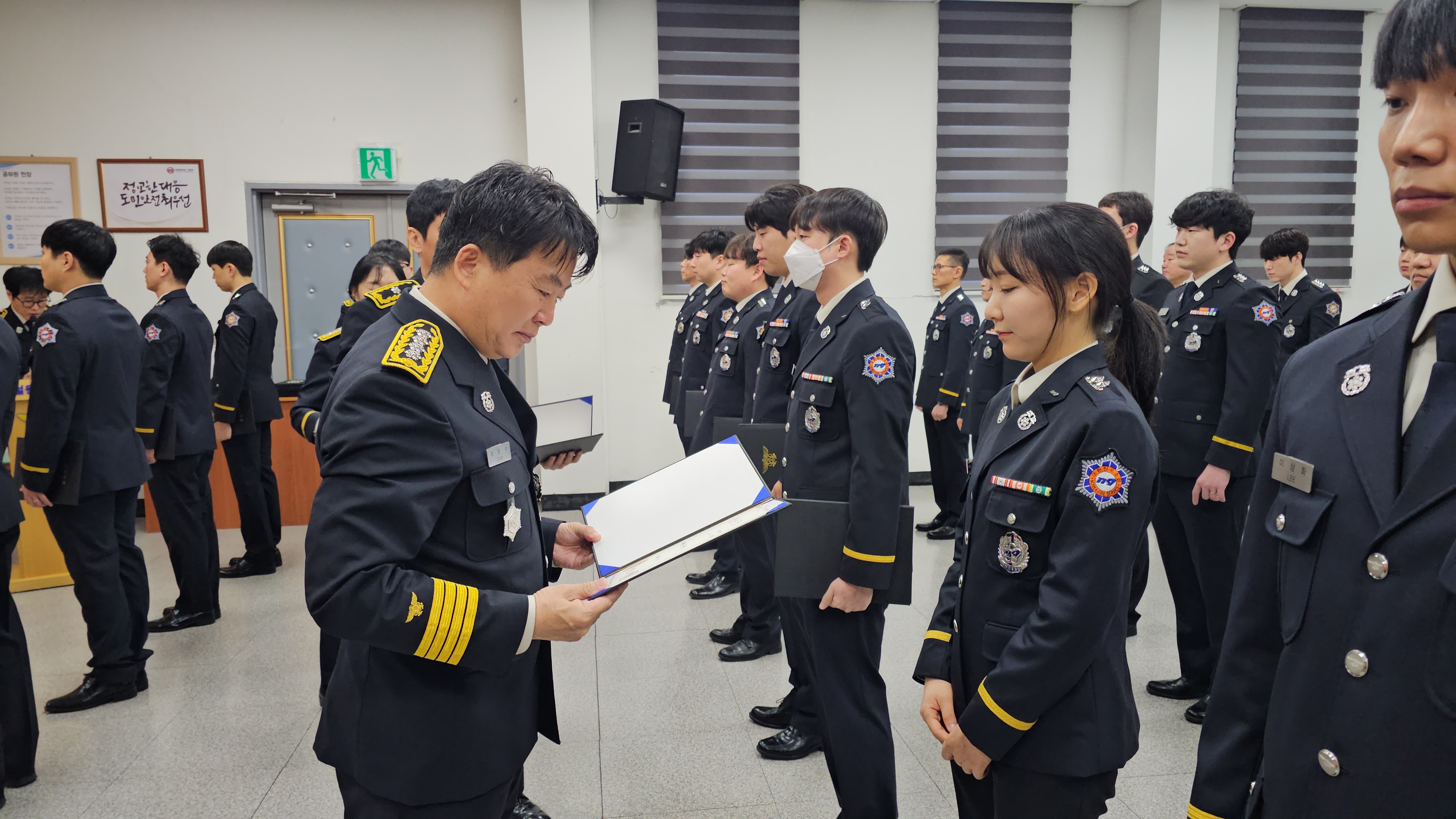 최임수 서장은 “이번 승진과 인사 이동을 통해 새로운 역할을 맡게 된 여러분 모두에게 진심으로 축하와 응원의 마음을 전한다”며, “각자의 자리에서 쌓아온 경험과 역량을 바탕으로 서로 존중하고 협력해 군민의 생명과 안전을 지키는 데 최선을 다해 달라”고 당부했다.