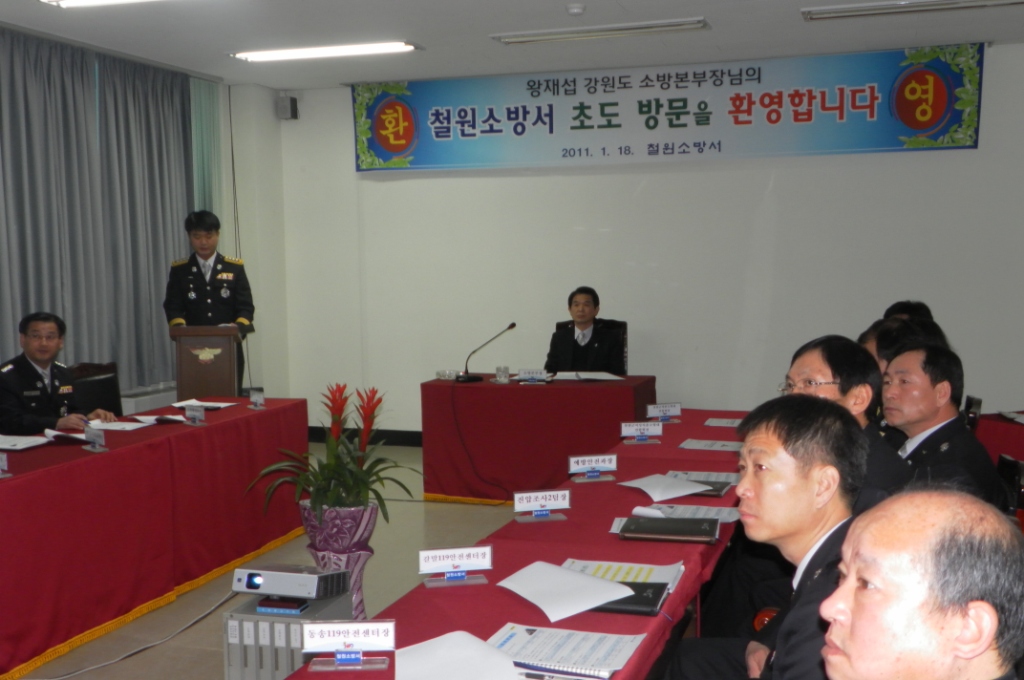 왕재섭 강원도 소방본부장은 18일 오전 9시30분 철원소방서(서장 최민철)를 방문해 2011년 업무보고를 받은 후 소방방재청이 주관하는 중앙 119구조대 동계수난구조 훈련장을 방문 격려하였다.
