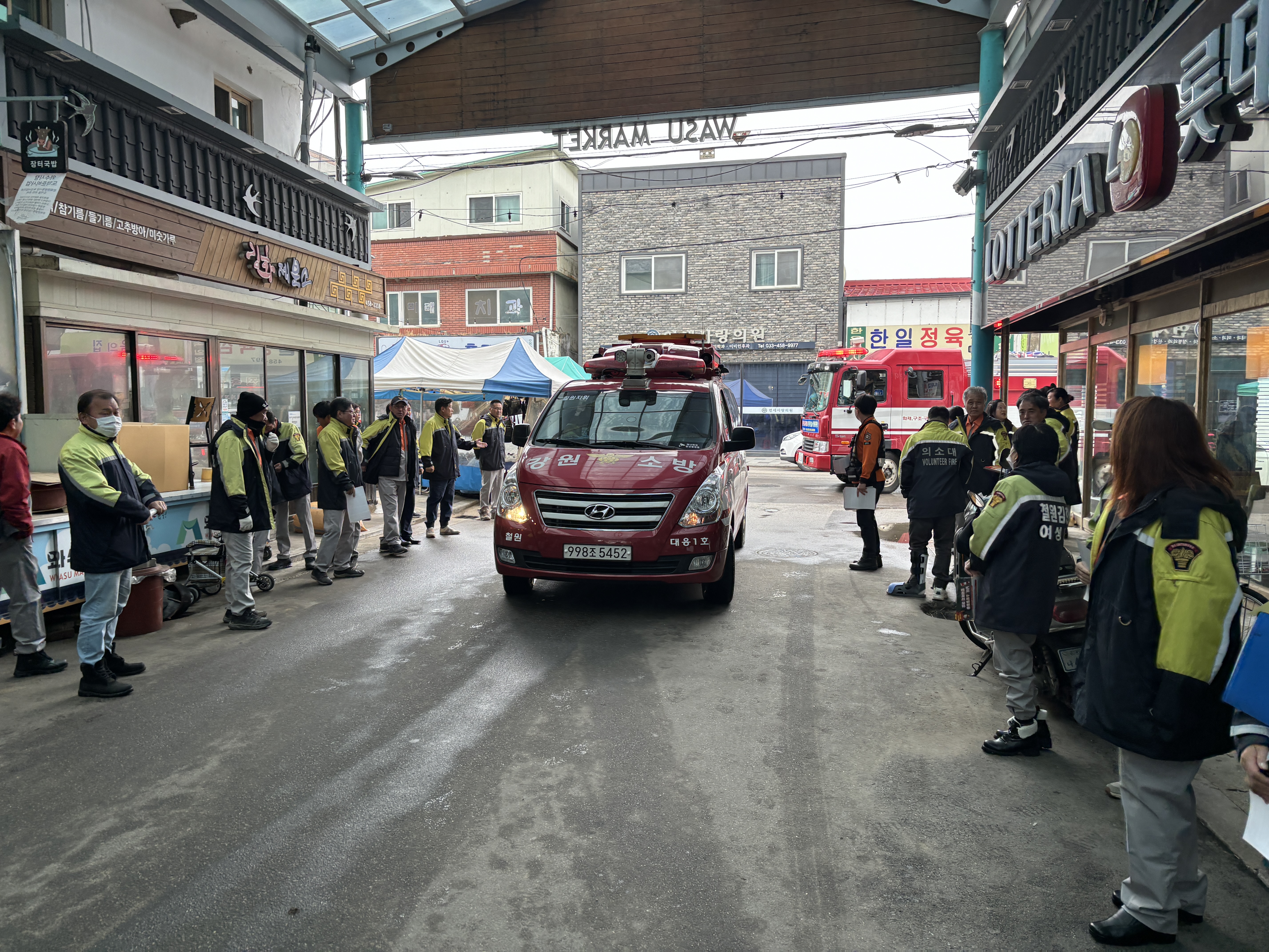 3월 26일 와수전통시장 소방차량 길 터주기 훈련 실시