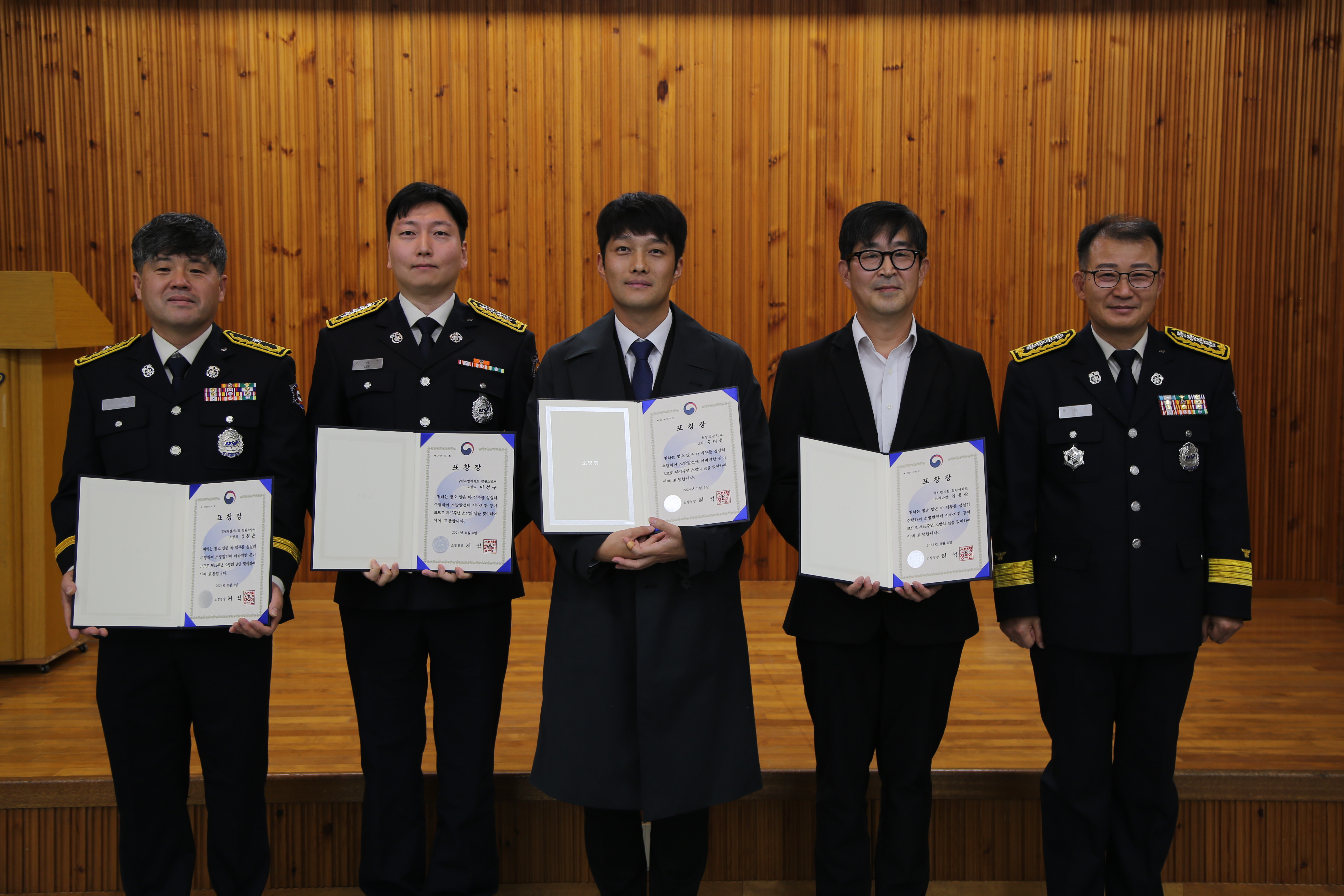 ▲장관 표창(소방: 노홍방) ▲소방청장 표창(소방: 김철손, 이성구, 민간: 홍대웅, 임용순) ▲도지사 표창(소방: 이혜성, 이명규, 의소대: 전동길, 민간: 우현근, 김성용, 홍석훈, 안미현) ▲도의회의장 표창(소방: 이진석, 의소대: 이우경, 이정화) ▲군수 표창(소방: 이학선, 권욱, 장기상) ▲군의회의장 표창(소방: 송대웅, 서현수, 박이레) ▲서장 표창(소방: 이형석, 주성환, 함미선, 민간: 김권기)