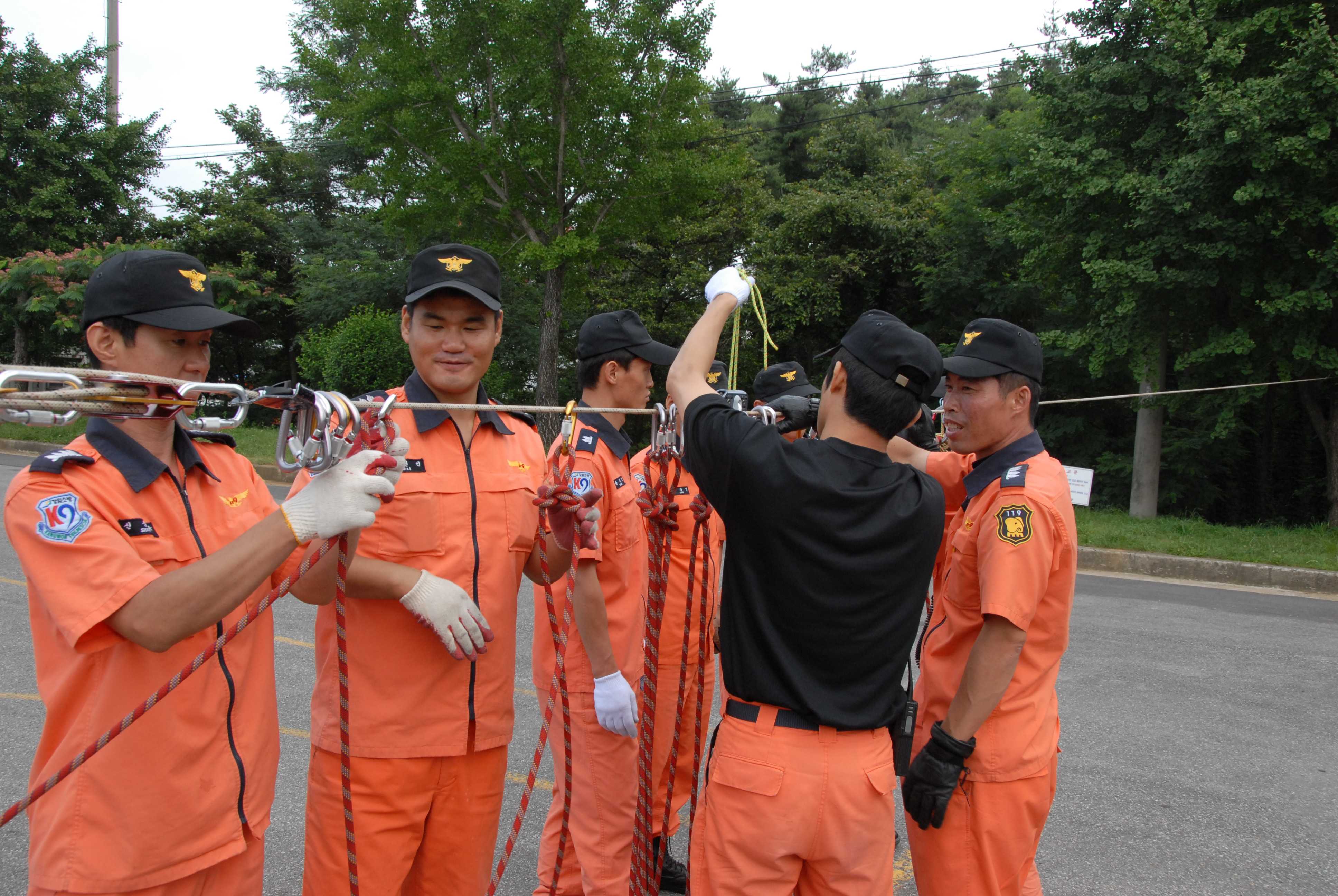훈련은 도하로프 결착 및 인명구조훈련, 현장활동 안전수칙준수 및 안전관리등이 중점적으로 실시 되었습니다.