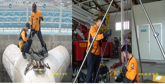 2010년 4월 19일 동해소방서 구조대에서는 해안 주변 및 방파제 산책등으로 추락사고가 많은 여름을 대비하여 방파제 추락사고 구조훈련 및 최근들어 많이 일어나는 지하맨홀 사고를 대비한 맨홀구조 훈련도 함께 실시하였습니다. 무엇보다도 가장 중요한것은 본인 스스로가 안전을 유의하여 이런 사고가 올해에는 한건도 없었으면 합니다.