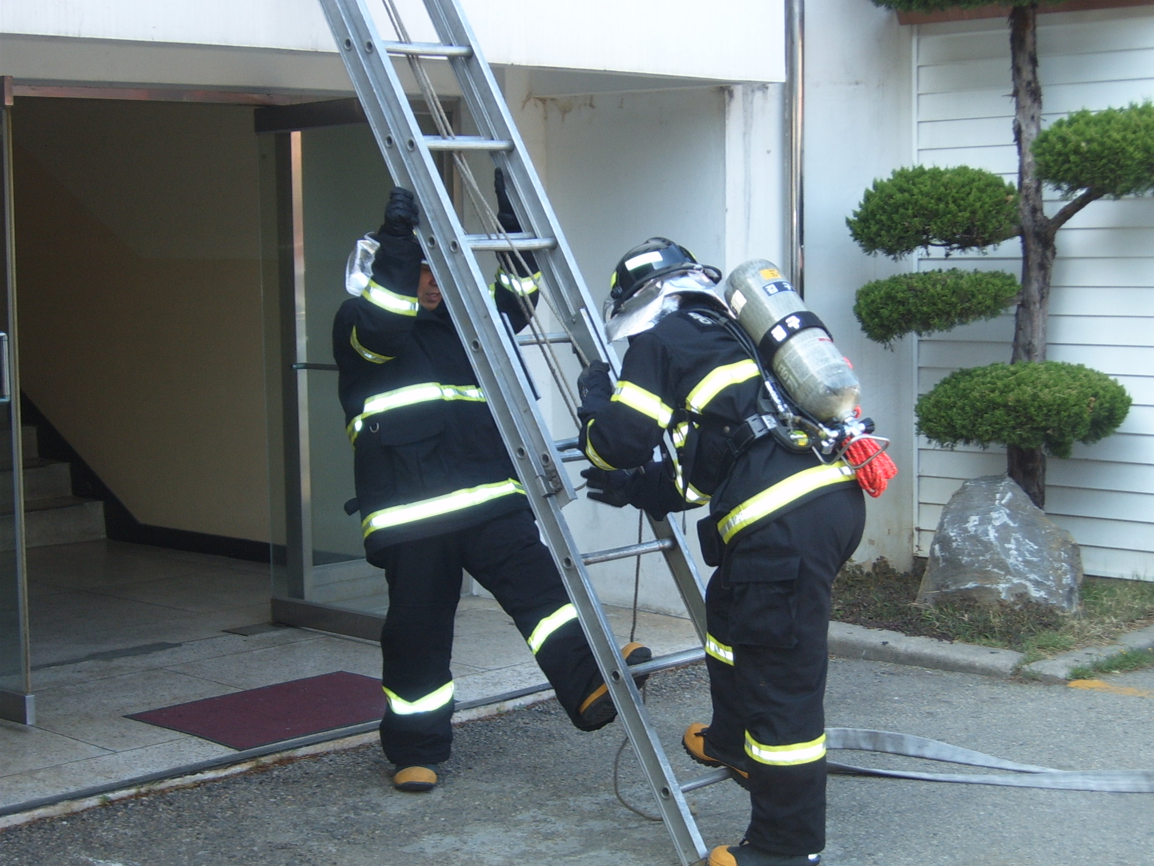 5월12일, 최복규 천곡센터장님과 1팀원들은 본서 후정에서 현장활동을 대비한 3인조 화재진압법 훈련을 실시하였습니다.