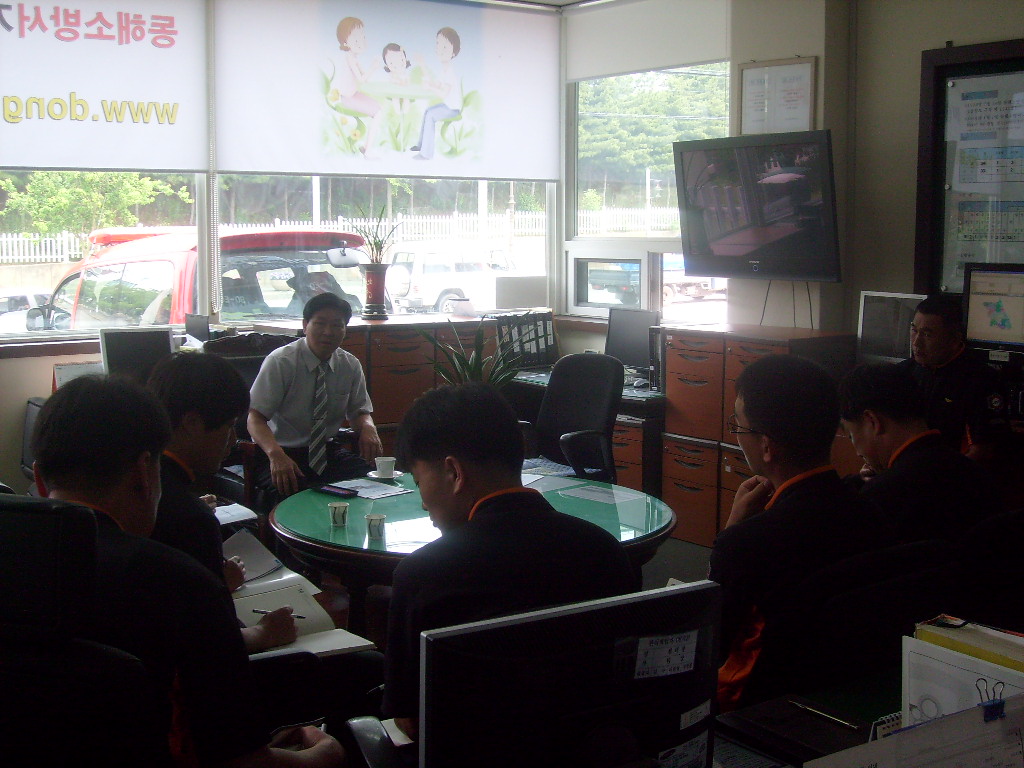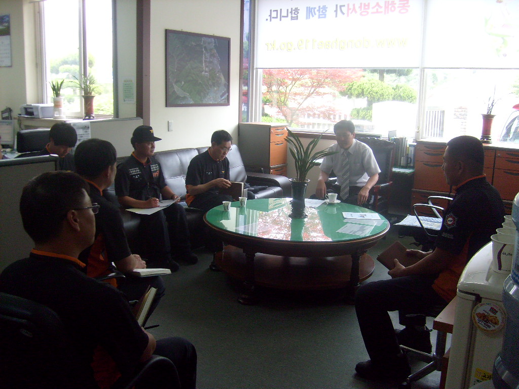 2010년 6월17일 동해소방서 김남숙 서장님께서 천곡119안전센터(센터장:소방경 최복규)에 방문하셨습니다. 서장님께서는 천곡센터 업무 전반에 대한 사항을 브리핑 받으셨으며, 직원들과 함께 근무애로 사항 및 건의사항에 대하여 의견을 나누어 주셨습니다.