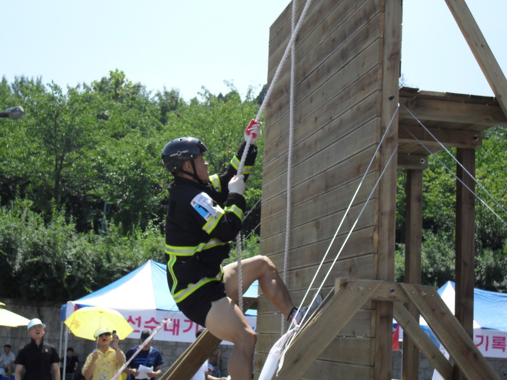 36도가 넘는 폭염의 날씨탓에 탈락자가 속출하는 가운데도 호스 끌기, 장애물 코스, 구조물 경기, 계단 오르기 등 4단계를 11분 22초라는 놀라운 기록 완주하여 최강소방관의 칭호를 부여받았다.