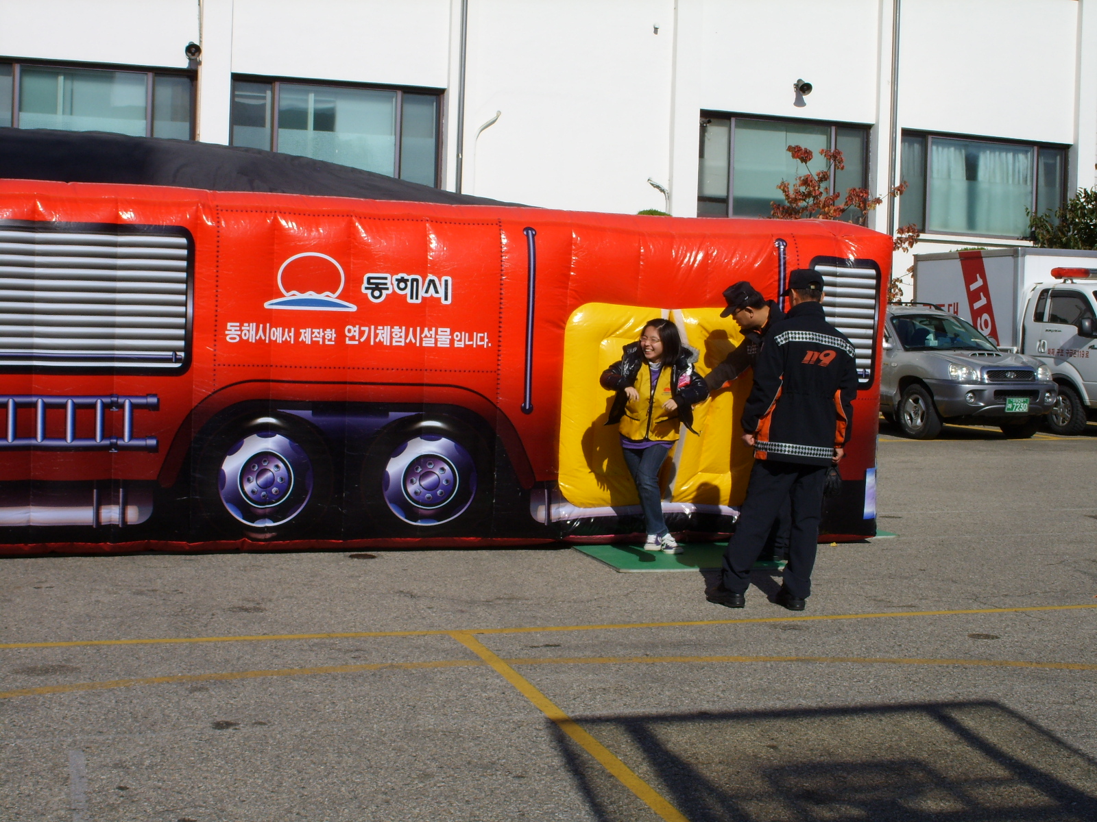 심폐소생술과 하임리히법 등 응급처치요령에 대하여 배우고 직접 실습해보는 시간을 가졌으며 연기체험장을 운영하여 체험교육을 통해 소방안전을 직접 몸에 익히는 시간을 가졌다.