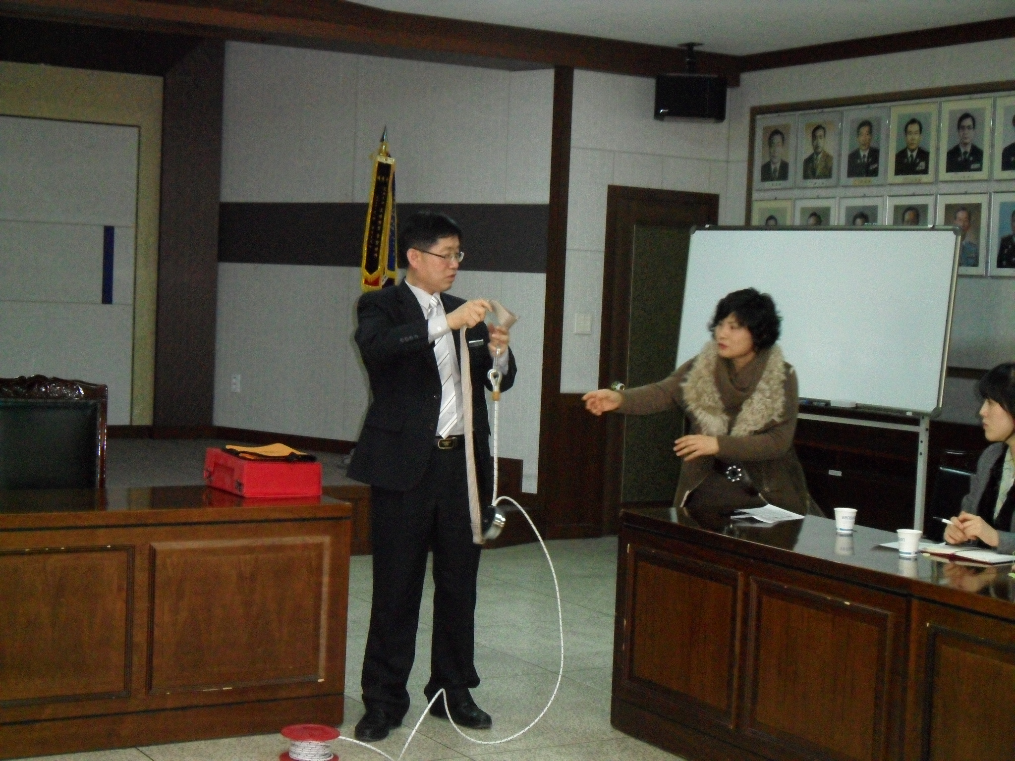 유치원 선생님들의 어린이 소방안전교육 지도 능력 제고를 위한 대화의 시간을 가졌으며, 완강기 등 피난 시설을 체험해볼 수 있는 시간도 가졌습니다.