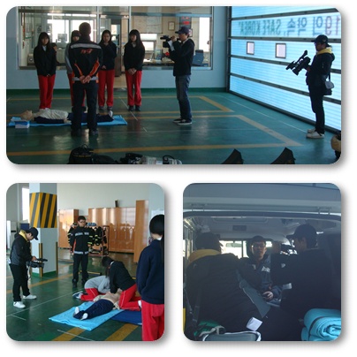이날 촬영은 구급대원들과의 대화의 시간, 심폐소생술 시연, 방화복 및 공기호흡기 착용 후 소방차 탑승등 다양한 현장 체험을하였으며,