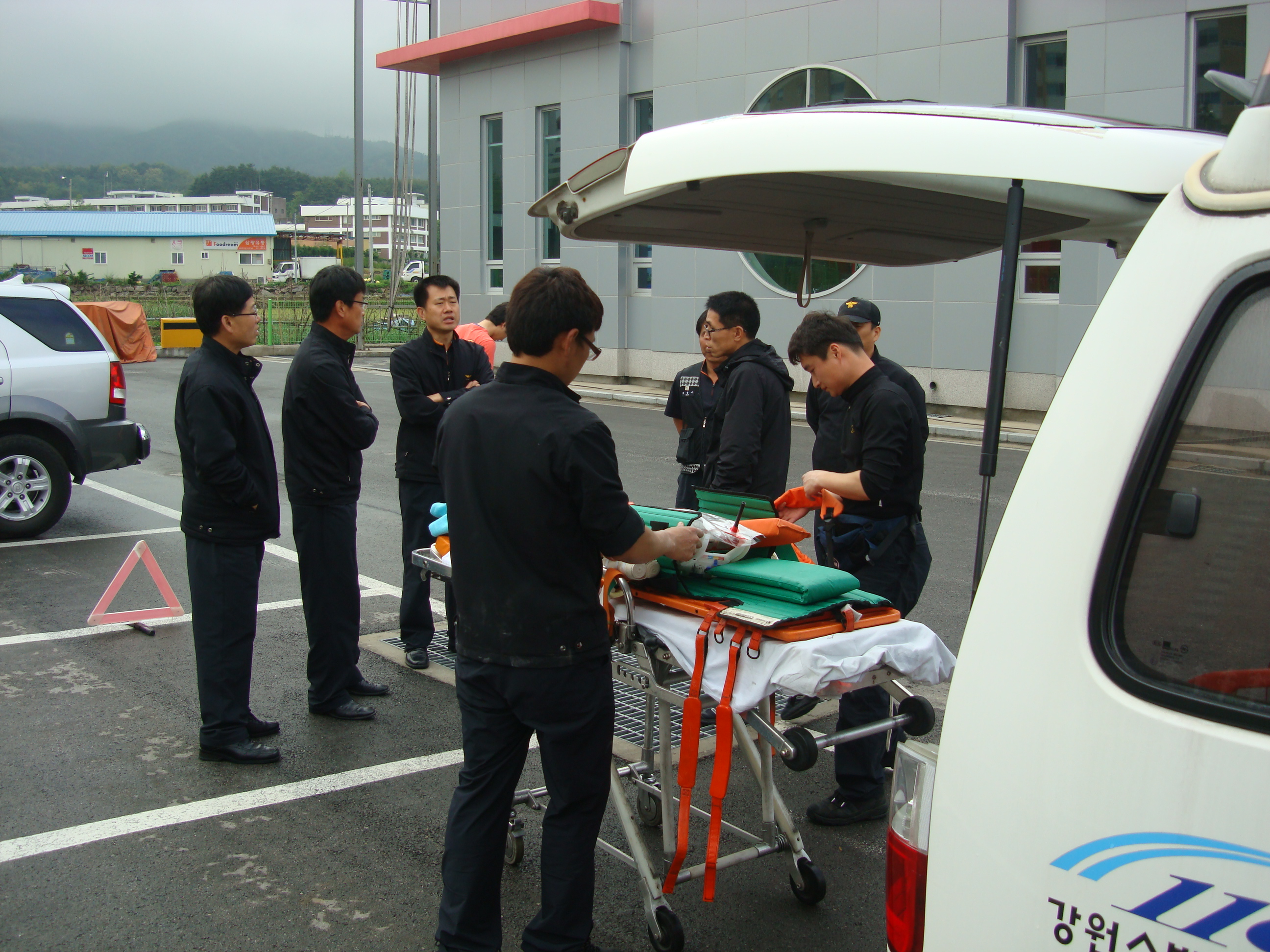 강원도 소방기술경연대회 구급분야에 출전하는 북삼119안전센터 홍재의팀장, 천윤재, 계영인 선수를 격려해주시기 위해서 예방안전과장님, 대응계장님, 김진문주임님, 임덕부장님께서 북삼센터를 방문해주셨습니다. 훈련준비에 격려와 도움을 주신 동해소방서 직원분들께 감사의 말씀 드립니다. 당직 근무 후 휴무날 직접 맛있는 피자와 음료수를 가지고 응원 와주신 현장지휘대 김민주반장에게도 감사의 말씀^^