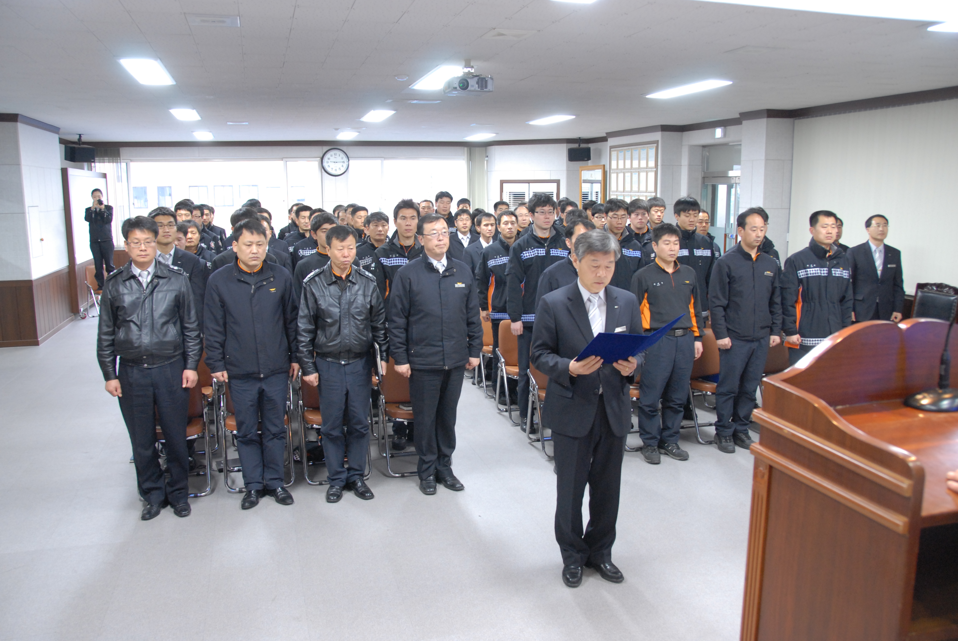 오늘 교육 에서는 동해시선거관리위원회의 외래강사를 초빙하여 선거철 공직자로서의 정치적 중립과 공직자로서의 자세에 대한 교육 받았으며, 365일 무사고 결의 대회를 통해 한해 안전사고 없는 안전한 현장활동를 다짐하였습니다.