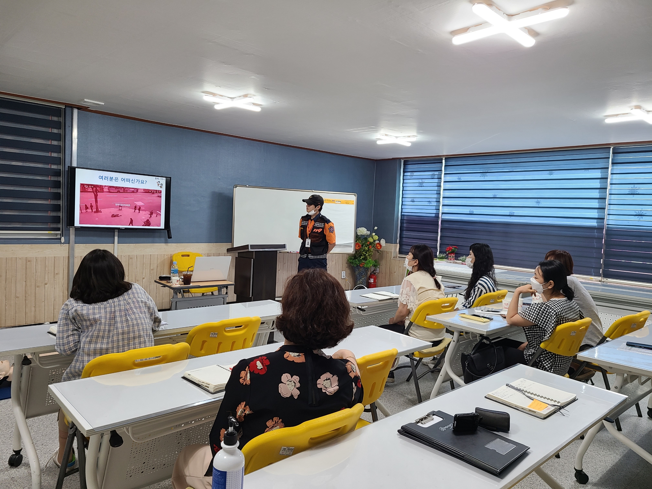동해소방서에서 진행하는 소방안전교육은 코로나19 심각단계가 격상된 이후 잠정 중단되었으나, 코로나19 정부 대응지침이 생활 속 거리두기로 전환됨에 따라 자체 생활방역지침을 수립하여 이달 초부터 다시 재개 되었다.