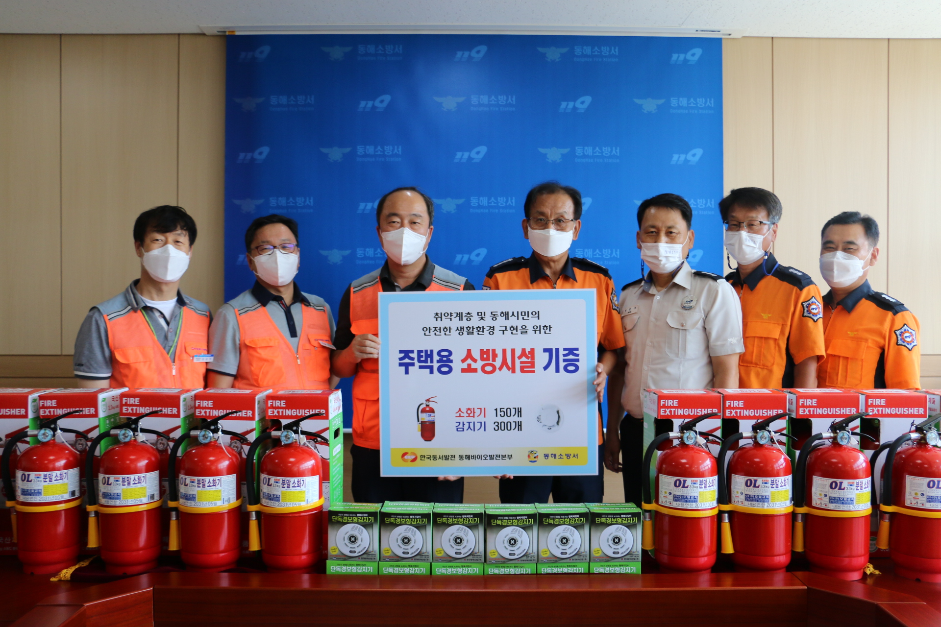 이용길 동해소방서장은 8월4일(수) 오후2시 한국동서발전 동해바이오발전본부장외 관계자2명 참석가운데 동해소방서 소회의실에서 주택용 기초소방시설 기증식 및 간담회를 실시하였다.