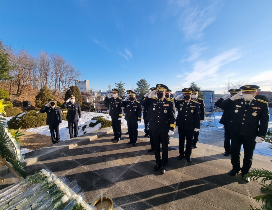 동해소방서(서장 이용길)는 2022년 임인년 새해를 맞아 1월 3일(수) 오전9시 천곡동에 위치한 충혼탑에서 순국선열과 호국열령 및 순직소방인의 숭고한 뜻을 기리기 위해 참배를 실시하였다.