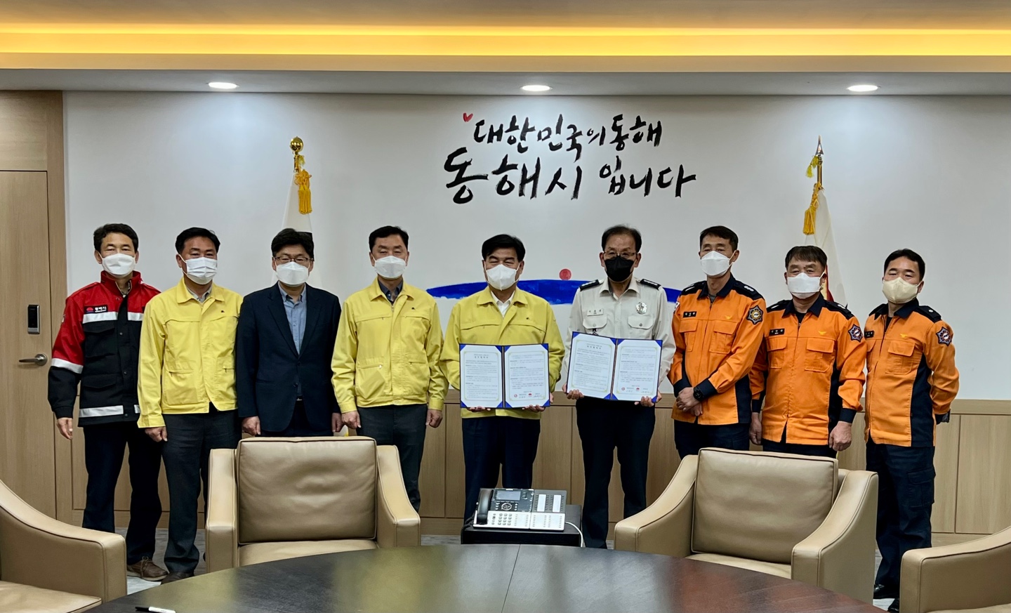 동해소방서와 동해시는 4월 13일 10시 40분 동해시청 3층 통상상담실에서 산불 공동대응을 위한 업무협약을 체결했다.