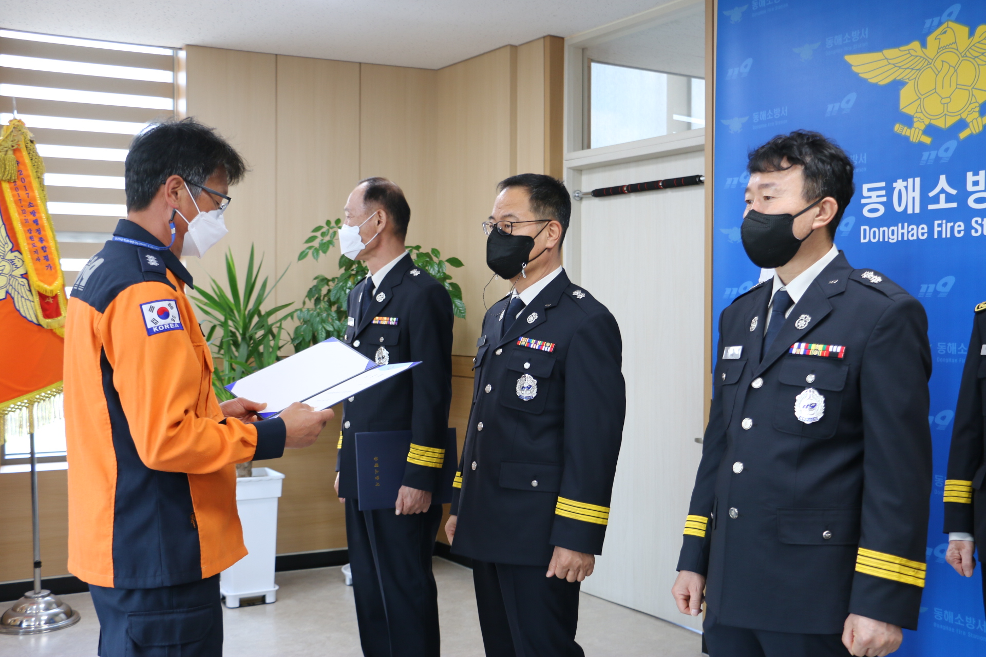 동해소방서(서장 이용길)는 금일 오전9시 서장실에서 5월 1일자 승진 및 서내 인사발령 임용식을 가졌다