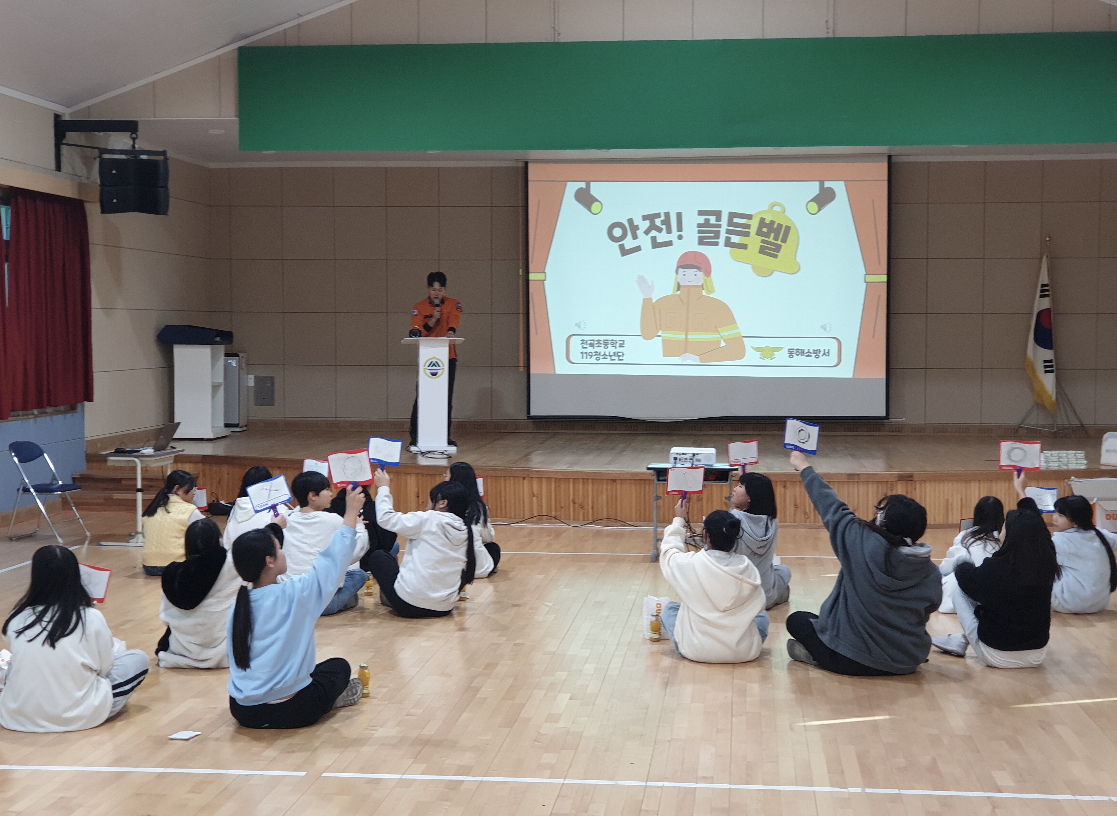 동해소방서 한국119청소년단(천곡초) 소속 학생 36명이 참여한 이번 퀴즈 이벤트는 화재안전, 응급처치, 자연재난, 생활안전 등을 다양한 주제로 문제를 풀며 어린이들이 자연스럽게 안전 상식을 익힐 수 있는 시간이 되었다.