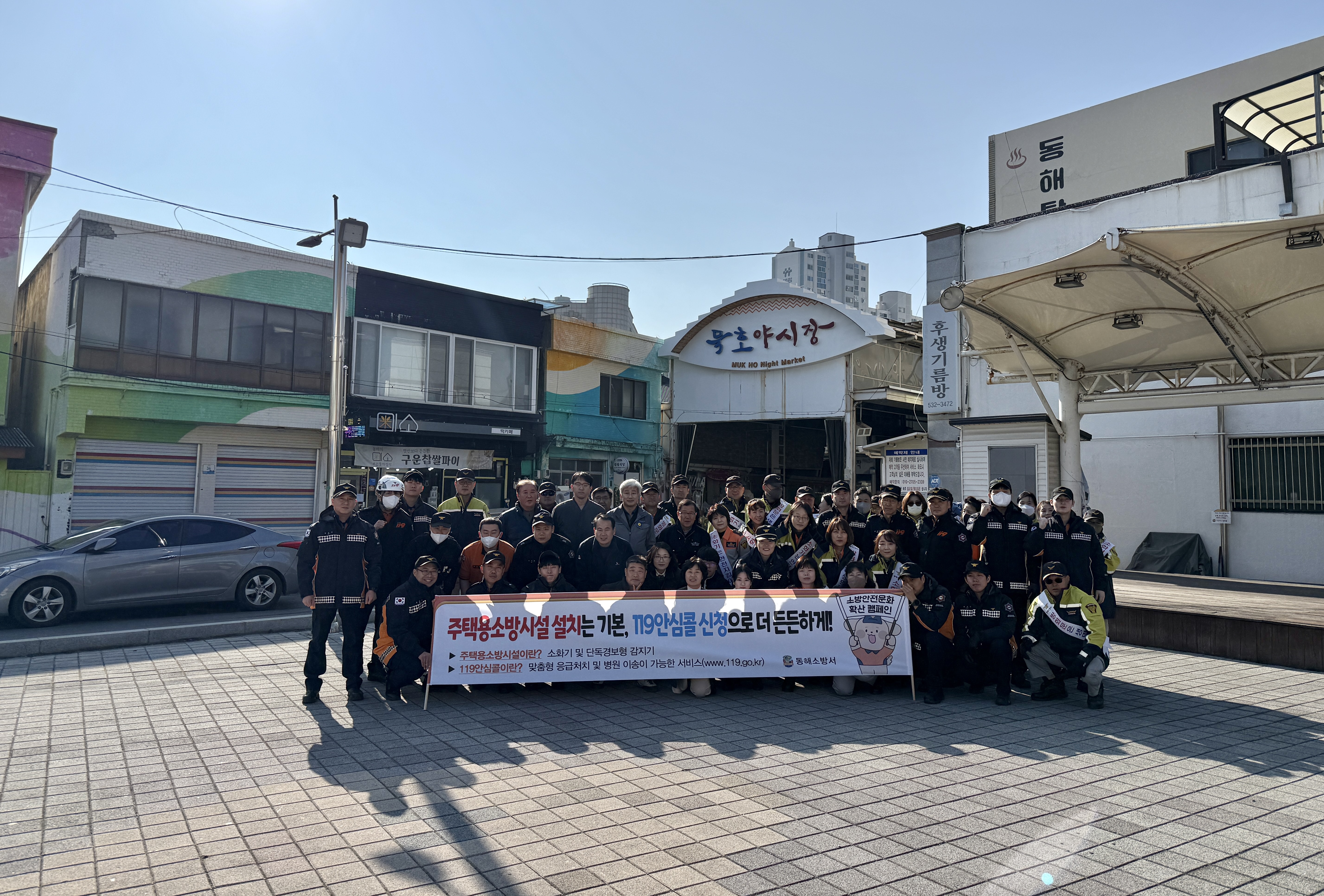 동해소방서(서장 심규삼)는 설 명절을 앞둔 23일, 동쪽바다중앙시장에서 겨울철 화재예방과 안전문화 확산을 위한 소방안전문화 캠페인을 진행했다.