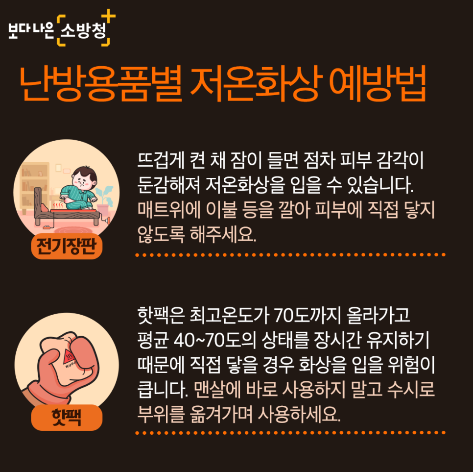 추운계절 저온화상에 주의하시고 안전한 겨울 보내세요!
