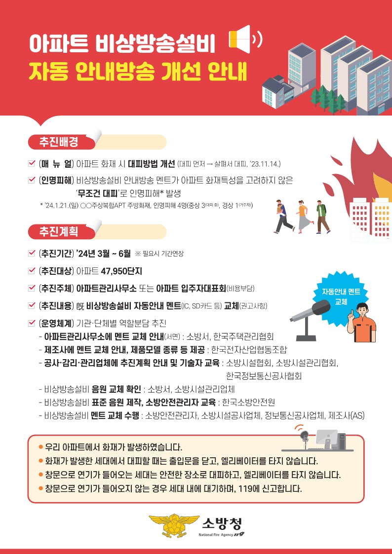 아파트 비상방송설비 안내방송이 개선되었습니다.