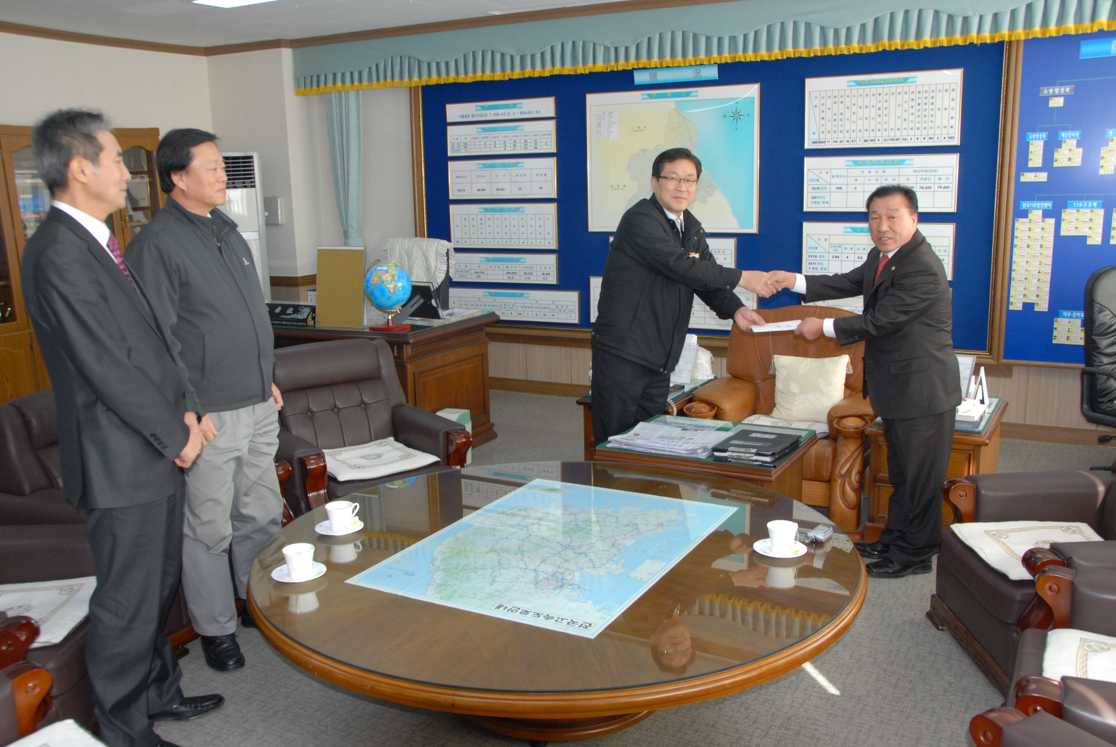 동해시의회 의장, 농협시지부장, 쌍용자원개발 대표이사님은 서장실에서 격려 말씀 후 위문금을 전달하였습니다.