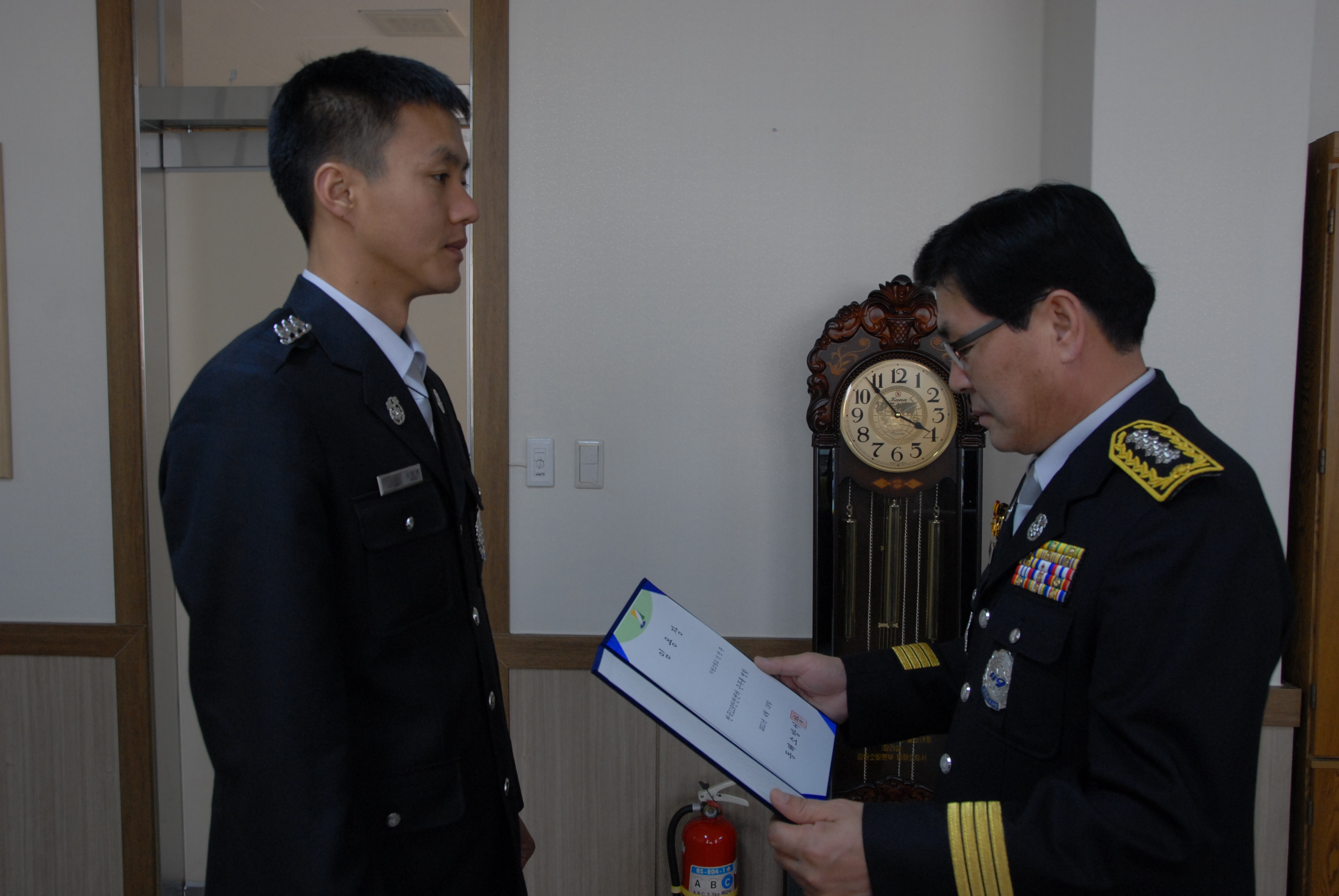 동해소방서 (서장 김남숙) 은 천곡119안전센터에 근무하고 있는 소방사 강창훈 에게 임용장을 수여하였읍니다.