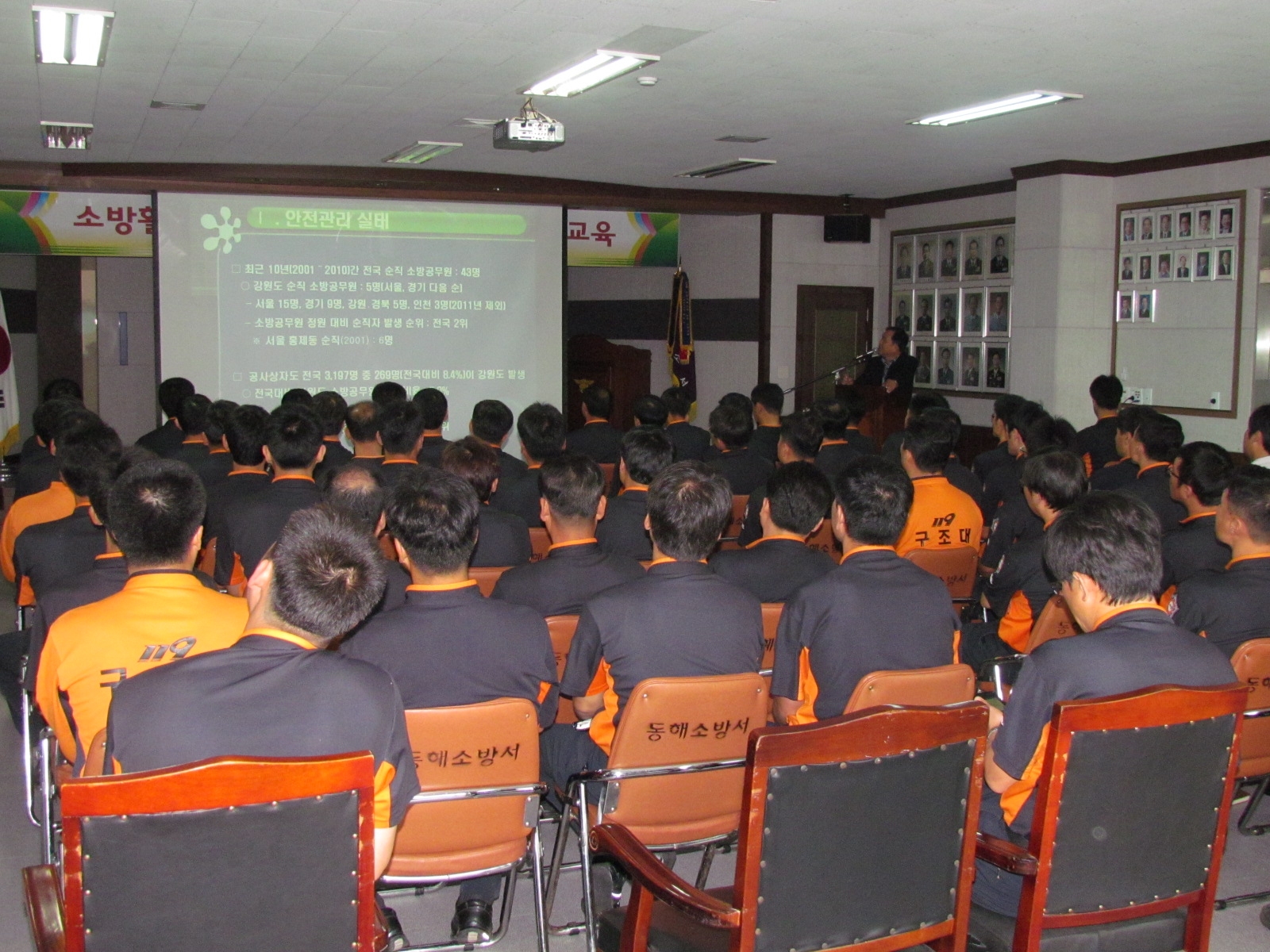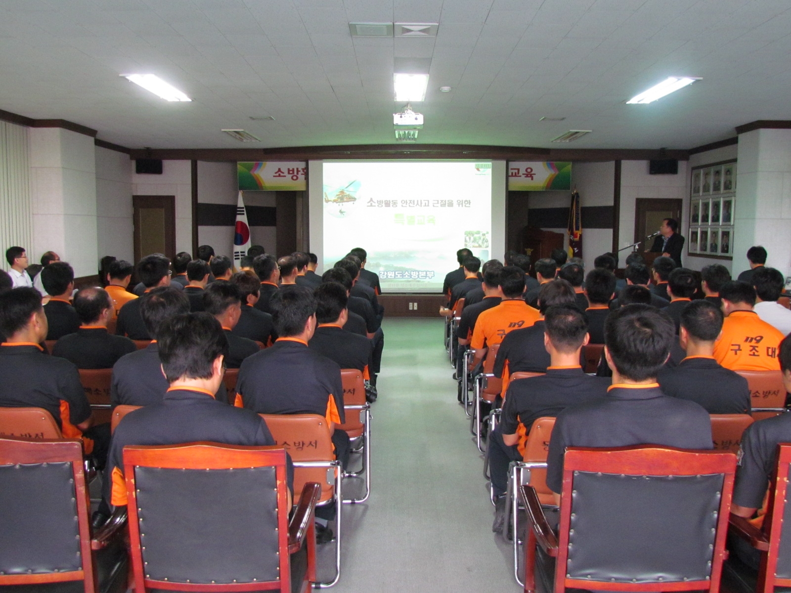 강원도 소방본부 주관, 동해소방서(서장 김기성) 전직원을 대상으로 "소방활동 안전사고 근절을 위한 특별교육"을 오는 26일 오전 9시 본서 대회의실에서 가졌다. 이번 특별교육에서는 개인안전장구 착용 및 현장안전수칙 준수 등을 교육하였으며 우리서 안전관리실태점검을 병행 실시하였다.