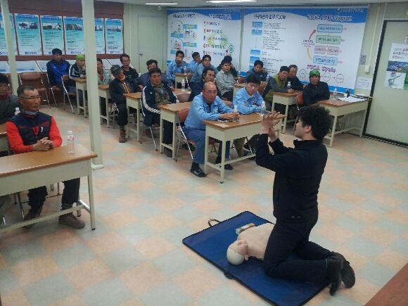 동해소방서(서장 김남백)은 15일 16시에 한진중공업 사무실에서 근로자 36명에게 심폐소생술 교육을 실시했다.