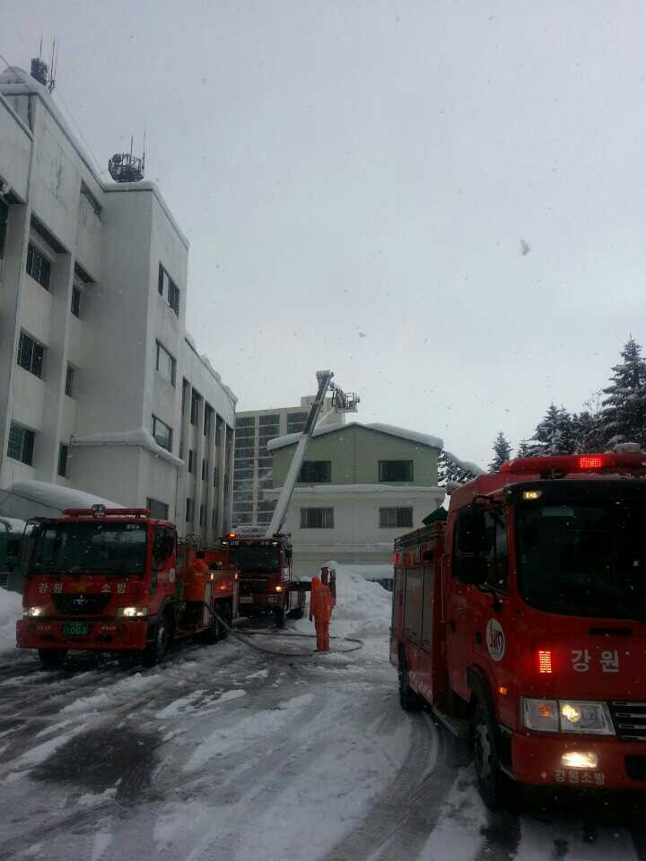 동해소방서(서장 주항중)는 2014. 2. 13 동해시의 역사기록과 유물, 문서등이 보관되어있는 동해시청 별관 건물의 지붕 붕괴 위험이 우려되어 제설작업을 실시하였습니다.