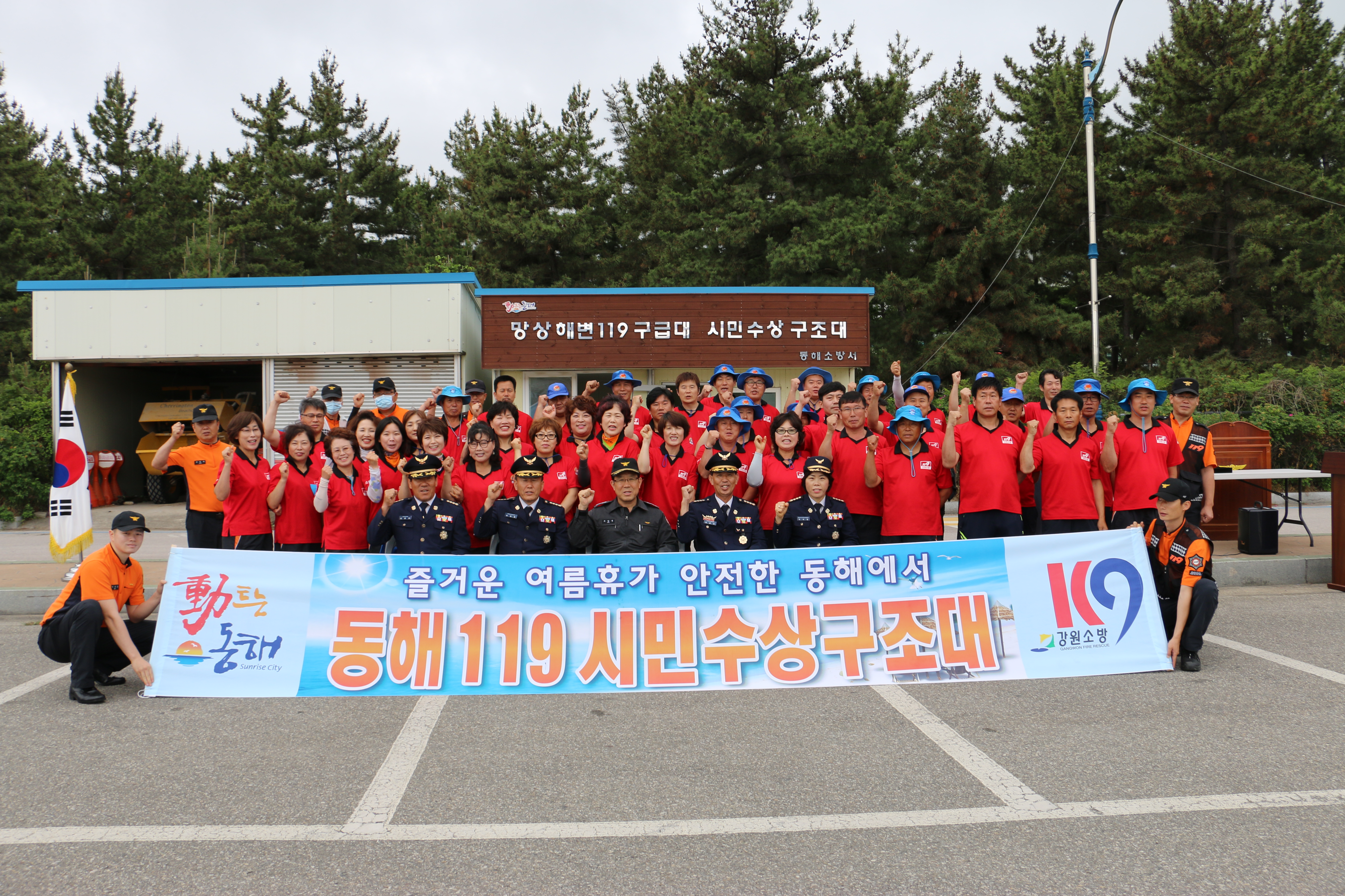 동해소방서(서장 주항중)는 19일(금) 오전 10시 망상해변 119시민수상구조대 사무실 앞에서 소방공무원, 의용소방대장, 수변안전요원 등 67명이 참석한 가운데 2015년「119시민수상구조대」발대식 및 교육훈련을 실시했다.