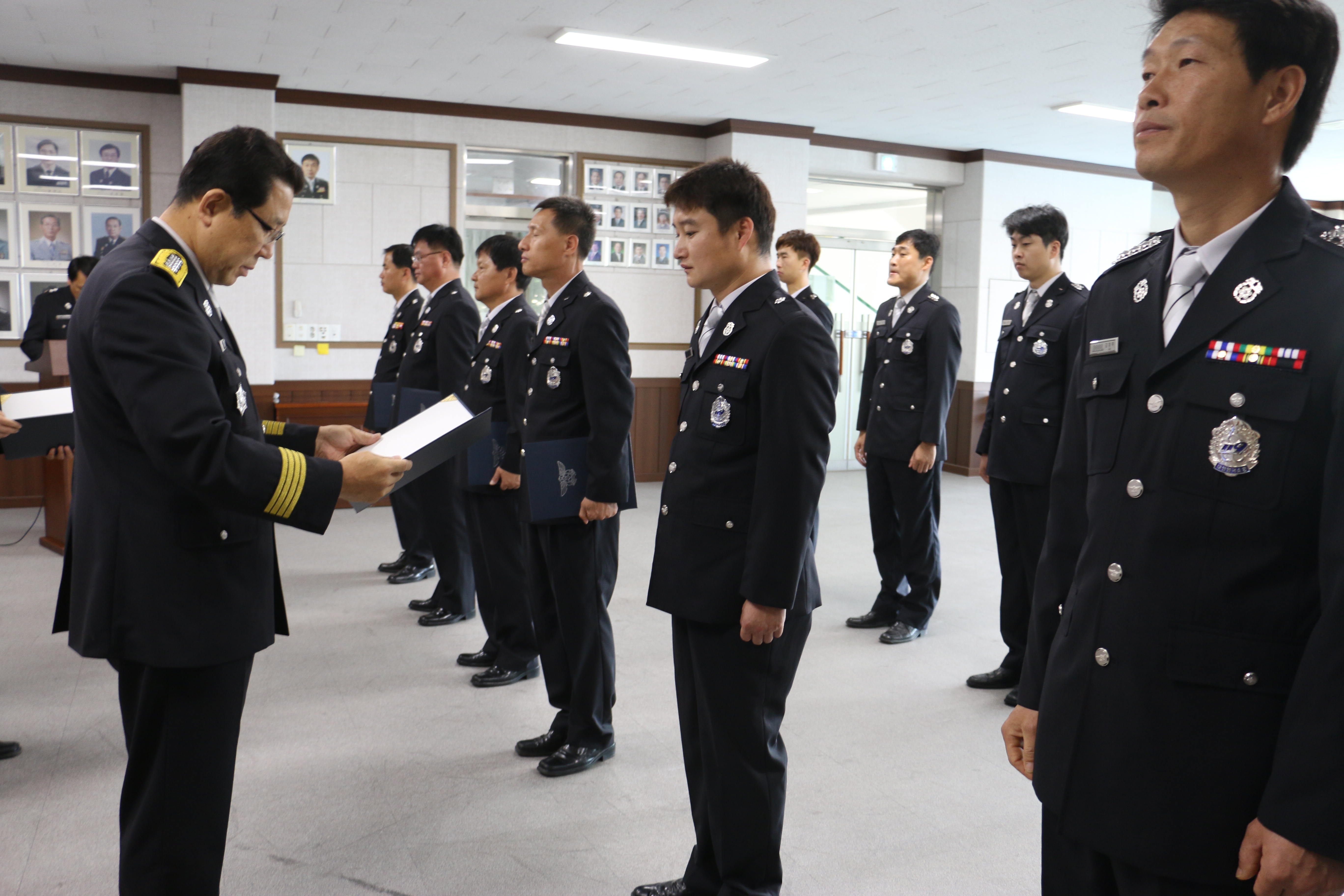 동해소방서(서장 주항중)는 3일(금) 오전 9시 소방서 2층 대회의실에서 7.3자 서내 인사발령자 16명중 승진자 1명 및 신규임용자 4명을 제외한 11명이 참석한 가운데 신고식을 갖고 임용장을 수여했다.
