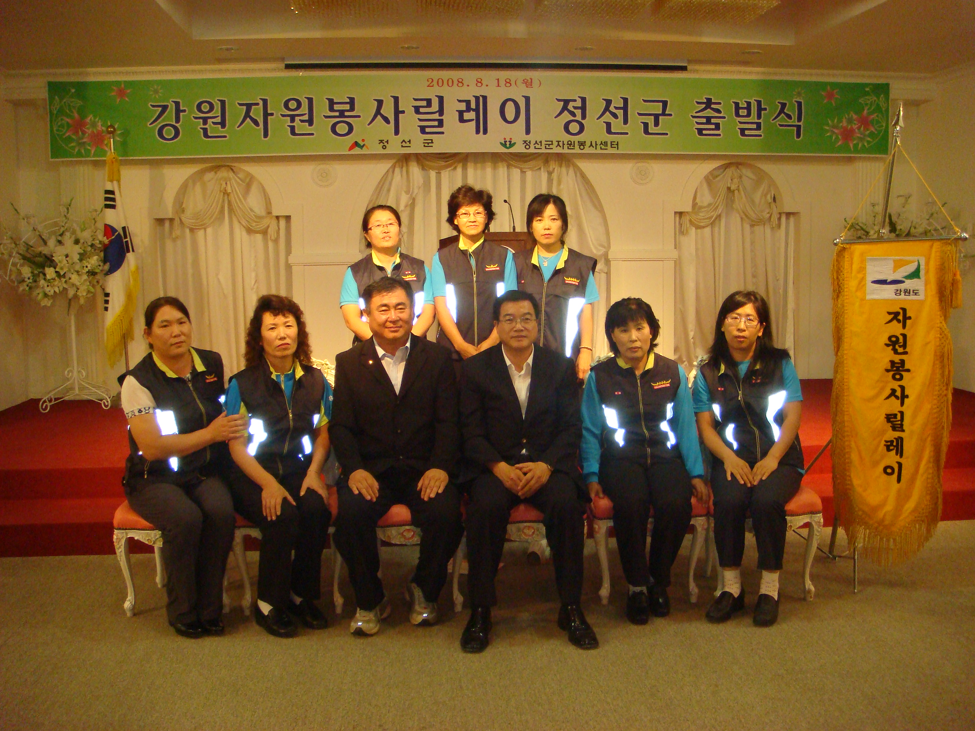 정선의용소방대(대장:박진호)와 정선여성의용소방대(대장:장순자)는 지난 8월18일 정선여성회관에서 열린 강원자원봉사 릴레이 출발식에 참가하여 성공적인 봉사활동을 기원하였다. 정선선의용소방대와 정선여성의용소방대는 20일 릴레이 단체봉사활동을 실시한다.