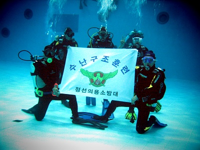 정선소방서(서장:우원기) 정선의용소방대(대장:박진호)수난구조팀은 지난 4월26일 경기도 수원시 월드컵경기장내 위치한 잠수풀을 찾아 수난구조훈련을 실시하였습니다. 이날 훈련은 스쿠버기본훈련과 스킨훈련, 수중장비착탈과 수색훈련이 강도높게 중점적으로 실시되었으며 소방보조단체로서 임무를 충실히 수행하기 위한 목적으로 시행되었습니다.