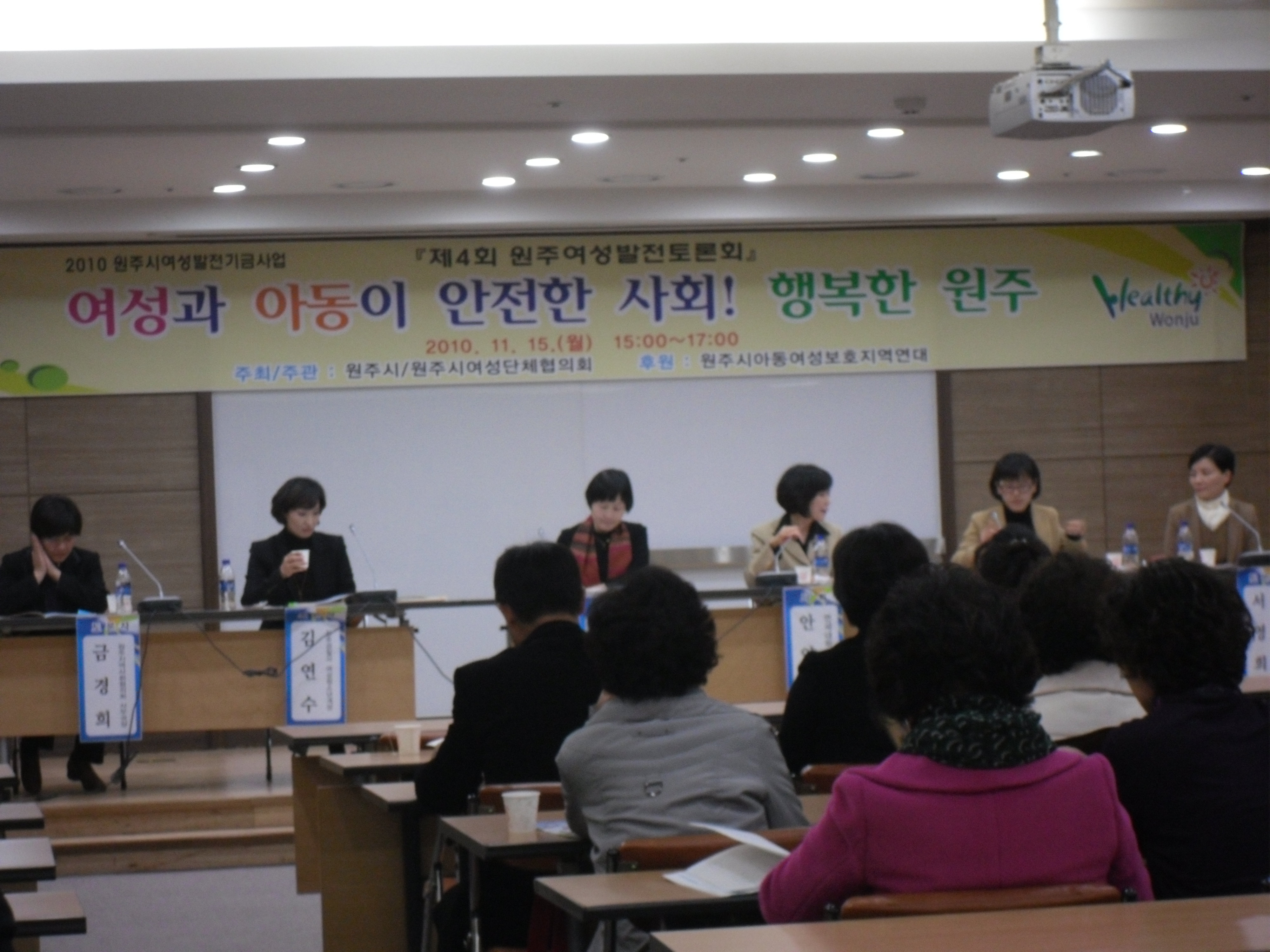 2010년 11월 15일(월) 15:00~17:00 원주시여성의용소방대연합회(회장 오오석)는 원주시여성단체협의회 주관으로 실시된 제4회 원주시 여성발전토론회에 참석했습니다.