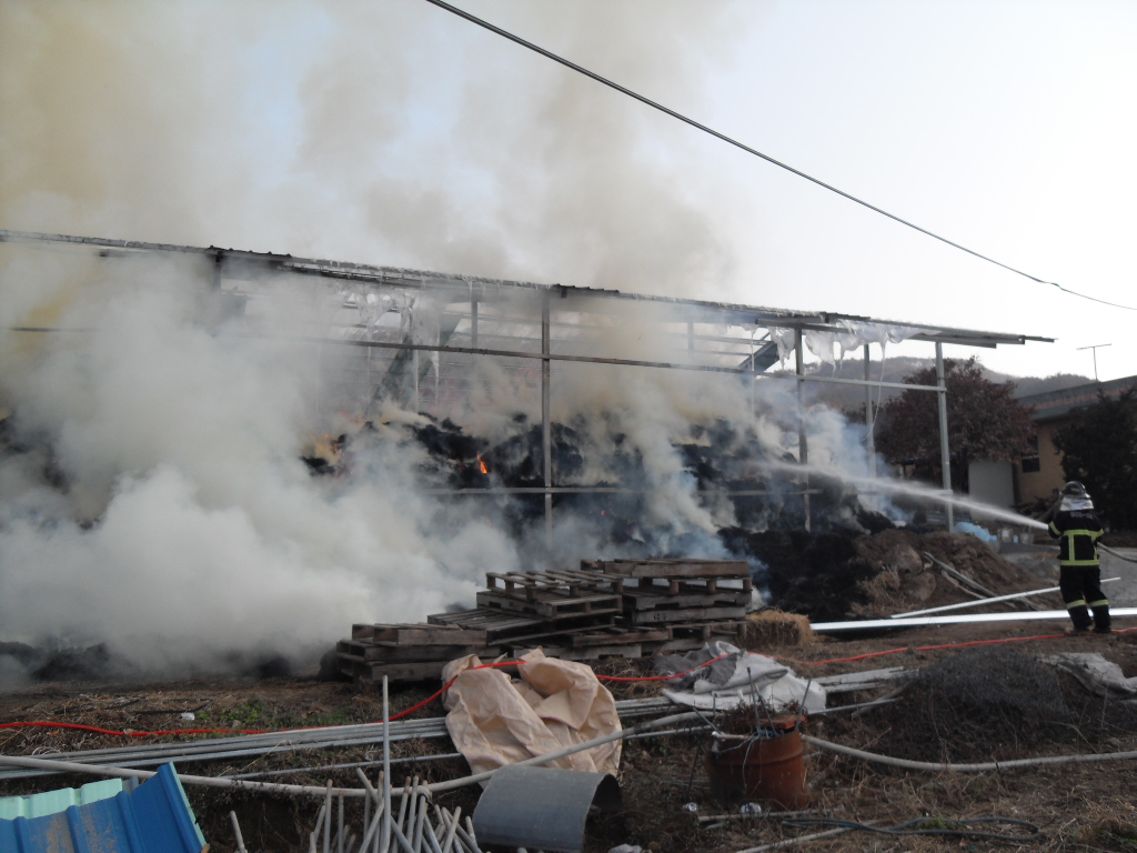 부론의용소방대(대장 김진수)는 지난 11월 20일 오후 3시 30분경 발생한 손곡1리 짚가리 화재 현장에 신속하게 출동 화재 진압 활동을 진행했습니다. 이날 화재는 가축축사 증축공사중 용접 불꽃이 짚단에 튀기면서 발생한것으로 특히 농촌지역에서 축사 주변에서의 용접작업에 각별한 주의가 필요함을 다시한번 알려주었습니다. 이날 화재는 짚단 화재의 특성상 늦은 시간까지 짚단 모두를 해체하면서 속에 있는 불씨까지 진화 하느라 많은 애를 먹었습니다. 늦은 시간까지 참여해주신 남여 의소대원 모두에게 감사드립니다.