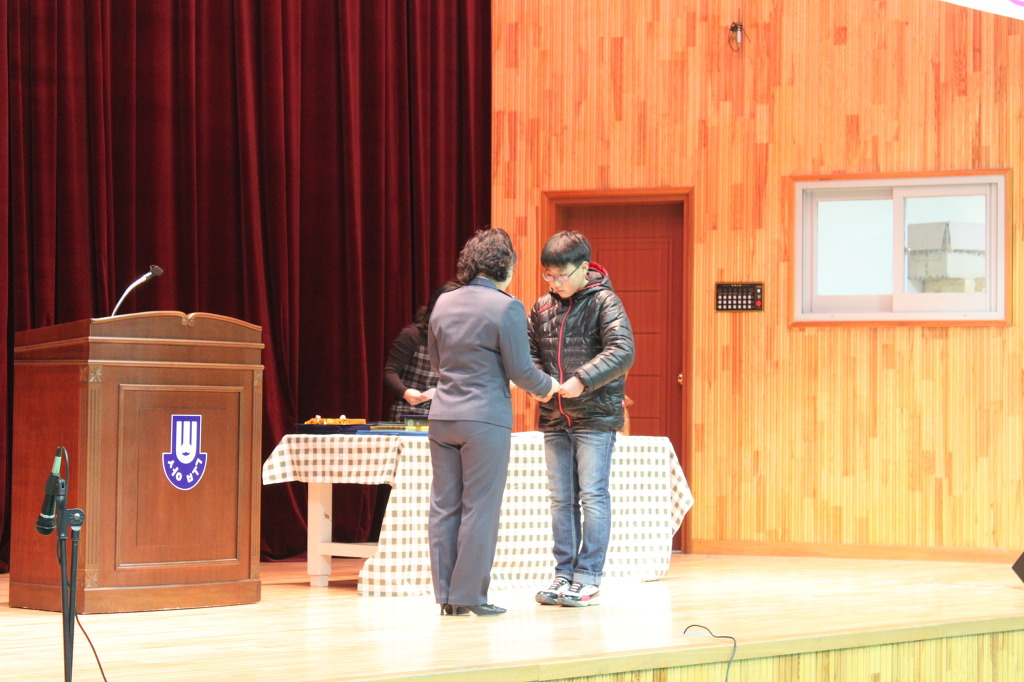 졸업생에게 장학금을 전달하였습니다.