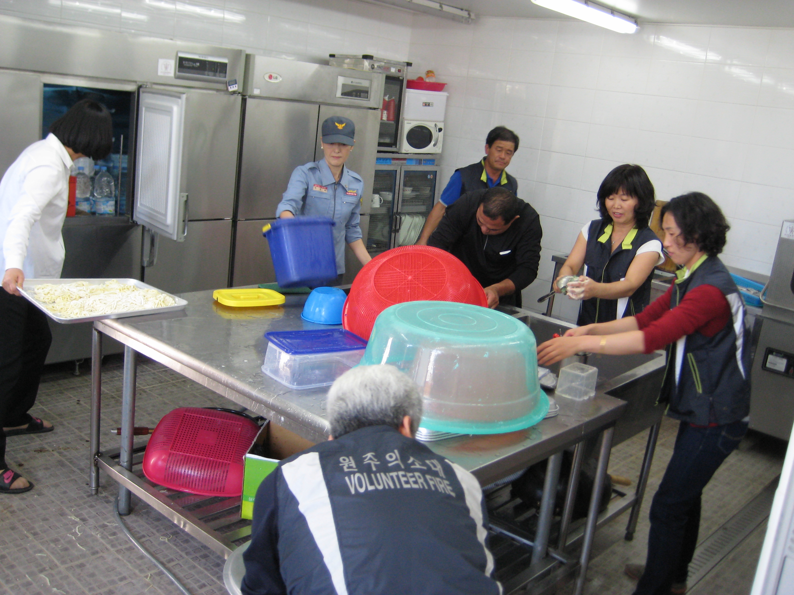 원주의용소방대(대장 조성일).원주여성의용소방대(대장 이현자)는 9월27일 10시부터 14시까지 태장동 "원주아동센타"에서 원생150여명에게 중식 자장면제공 봉사활동을 조성일대장님 이현자대장님외 대원 45명이 참가하여 실시하였습니다. 이곳은 예찬어린이집과 가은요양원이 같이 있어 자장면 배달 봉사인원이 많이 필요한 곳이었습니다. 원주의소대 김학배방호부장님과 보급반 이덕영 대원님의 가족의 도움으로 실시되었습니다
