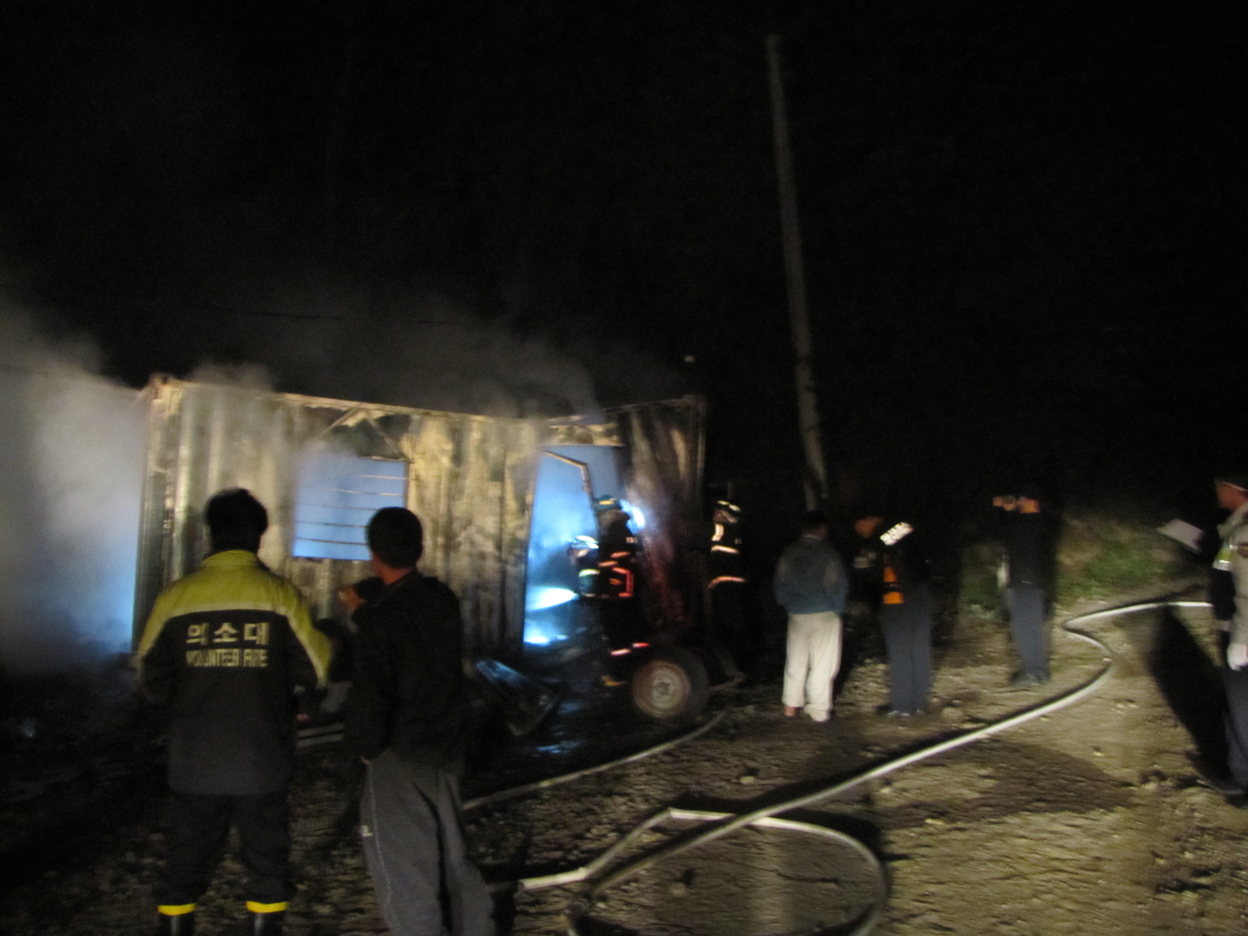 컨테이너 화재시 진압활동을 하였습니다.