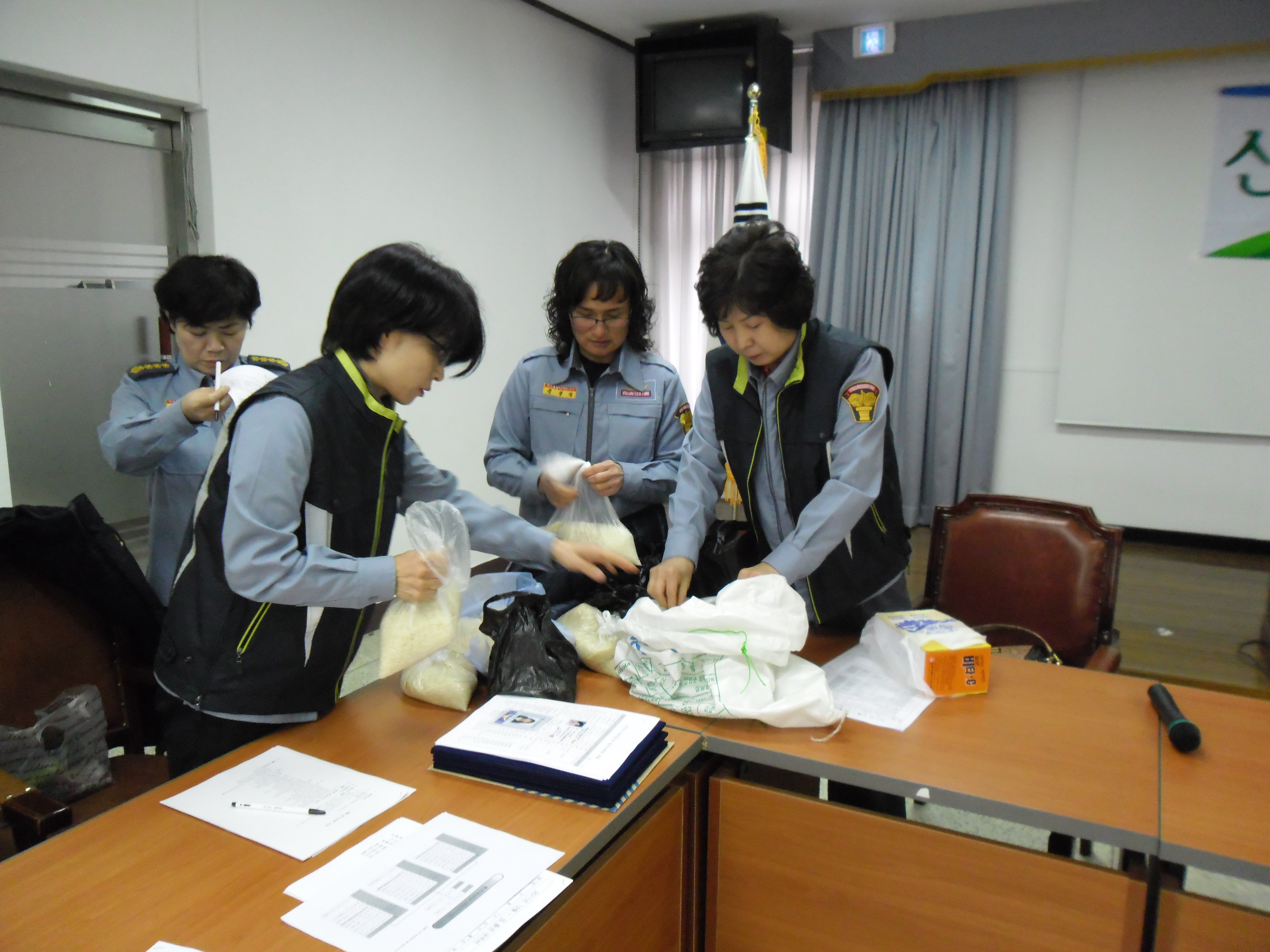 자체교육 시간에는 고3 자녀를 둔 대원(피미숙반장외 2명)들에게 장학금을 지급하는 시간과 일정시간동안 꾸준히 봉사를 해 온 대원(안성희구호부장외 5명)들에게 자원봉사센터에서 발급 받은 자원봉사자 마일리지증을 전달했답니다.